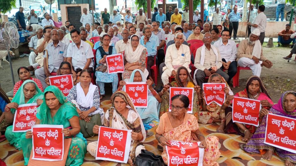 रबड़ फैक्ट्री श्रमिकों के वैधानिक भुगतान और भूमि कब्जे की मांग को लेकर एस एंड सी कर्मचारी यूनियन का धरना प्रदर्शन