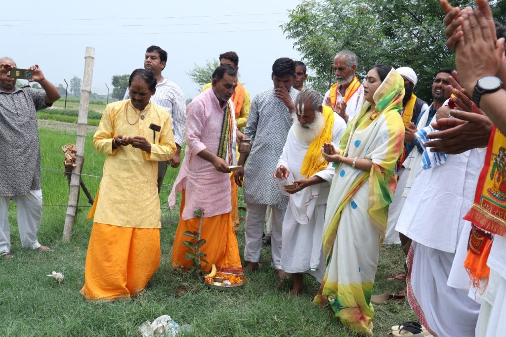 दातागंज के सराय गांव में पंचतत्व पौधशाला, तालाब और बाग का संत समाज ने शुभारंभ किया