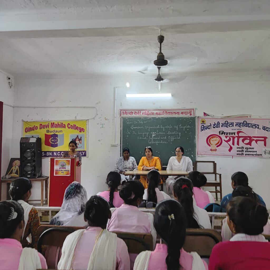बदायूं। गिन्दो देवी महिला महाविद्यालय , में प्राचार्या डॉ. सरला चक्रवर्ती के संरक्षण में एवं अंग्रेजी विभाग के तत्वाधान में ‘द लैंग्वेज आफ लेटर्स: डिकोडिंग फॉर्मल, इनफॉर्मल एंड ऑफिशियल कॉरेस्पोंडेंस’ विषय पर एक सेमिनार का आयोजन किया गया। महाविद्यालय की प्राचार्या ने छात्राओं का उत्साह- वर्धन करते हुए उन्हें ऐसे सेमिनार में लगातार प्रतिभाग करने के लिए प्रेरित किया। उन्होंने शिक्षा में पत्र लेखन विधा को महत्वपूर्ण बताया। डॉ शुभी भसीन ने लेटर्स के विभिन्न प्रकारों पर विस्तार से जानकारी देते हुए बताया कि लेटर राइटिंग एक महत्वपूर्ण कौशल है जो हमें अपने विचारों और भावनाओं को दूसरों के साथ साझा करने में मदद करता है। इसी क्रम में शिल्पी शर्मा ने बताया कि पत्र लेखन के विभिन्न पहलुओं को समझने से हम अपने संचार कौशल में सुधार कर सकते हैं। आज के युग में मीडिया और कम्युनिकेशन का महत्वपूर्ण स्थान है और इसमें पारंगत होना हर विद्यार्थी के लिए नितांत आवश्यक है। अवनिशा वर्मा ने लेटर्स की महत्ता को समझाते हुए हर प्रकार के लेटर का फॉर्मेट विस्तार से छात्राओं को समझाया।उन्होंने फॉर्मल, इनफॉर्मल और ऑफिशियल लेटर्स लिखने का फॉर्मैट विस्तृत ढंग से समझाया। इस कार्यक्रम में सभी छात्राओं ने बढ़ चढ़कर हिस्सा लिया ।