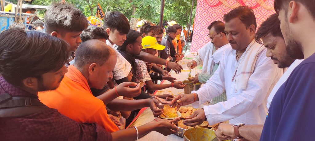 उझानी। नगर के बिल्सी रोड निवासी मैंथा कारोबारी / उधोग पति संजीव व सुशील साहू ने कोतवाली क्षेत्र के बरेली -मथुरा हाइवे स्थित श्रीजी की फैक्ट्री पर एक विशाल भंडारे का आयोजन किया जिसमें कावड़ियों को भरपेट भोजन उपलब्ध कराया। आयोजक शुशील साहित्यिक ने बताया कि यह भण्डारा प्रतेयक वर्ष श्रीजी की कृपा से आयोजित किया जाता है जिसमें लाखों श्रद्धालुओं आकर भरपेट प्रसाद ग्रहण करते हैं। भण्डारे बनाने में पूर्ण रूप से शुद्धता का ध्यान रखा जाता है भण्डारा बनाने के लिए शुद्ध देशी घी का उपयोग किया जाता है। भण्डारे में सेवा करने वालों में पंडित दीपक शर्मा,संजीव साहू, शुशील साहू, नितिन साहू आदि लोग मौजूद रहे !