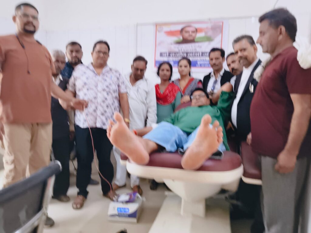 बदायूं में पूर्व पीएम राजीव गांधी की जयंती पर पूर्व अध्यक्ष ओमकार सिंह ने 52वीं वार रक्तदान किया
