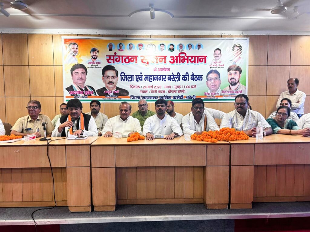 बरेली । कांग्रेस ने भाजपा के खिलाफ लड़ाई के लिए तेजी से मंडल और नगर वार्ड स्तर पर संगठन निर्माण शुरू कर दिया है। रविवार को जिला कांग्रेस कमेटी की मासिक बैठक रोटरी भवन पर उत्साहपूर्ण माहौल में संपन्न हुई। बैठक में संगठन सृजन अभियान के अंतर्गत संगठनात्मक मजबूती और विस्तार पर विस्तृत चर्चा की गई। विशेष रूप से ब्लॉक एवं नगर कमेटियों के गठन, साथ ही मंडल कमेटियों के गठन की रणनीति पर विचार-विमर्श हुआ। बैठक में भाजपा पर चुनाव में धांधली करने और किसान, नौजवान, गरीब विरोधी नीतियां बनाने का आरोप लगाया। बैठक के मुख्य अतिथि के रूप में कांग्रेस के कोऑर्डिनेटर अनूप वर्मा एवं नोडल प्रभारी अदनान ख़ान उपस्थित रहे। सभी ने संगठन को बूथ स्तर तक सशक्त करने के लिए ठोस सुझाव दिए और कहा कि जब तक संगठन की जड़ें बूथ पर मजबूत नहीं होंगी, तब तक जनसंघर्ष को निर्णायक रूप से नहीं लड़ा जा सकता । उन्होंने कहा कि भाजपा संवैधानिक संस्थाओं को खत्म कर रही है और चुनाव आयोग भाजपा के इलेक्शन मैनेजमेंट का काम कर रहा है। उन्होंने कहा कि गांव गांव गली गली राहुल गांधी का संदेश पहुंचाया जाएगा।भाजपा के खिलाफ सिर्फ कांग्रेस लड़ रही है। उन्होंने कहा कि एकजुट होकर कांग्रेस को मजबूत करने के लिए काम सभी को करना होगा। उन्होंने कहा कि जो नेता कांग्रेस की बैठकों में आएंगे, कार्यक्रमों में आयेंगे उन्हीं को जिला और प्रदेश स्तर तक जिम्मेदारी दी जाएगी। उन्होंने कहा कि संगठन के साथ सभी को काम करना होगा, अनुशासनहीनता कतई स्वीकार नहीं होगी। बैठक की अध्यक्षता करते हुए जिलाध्यक्ष मिर्ज़ा अशफाक सकलैनी ने कहा कि कांग्रेस का वास्तविक बल उसके कार्यकर्ताओं में निहित है। संगठन को गांव-गांव, गली-गली तक सक्रिय करने का लक्ष्य रखा गया है। उन्होंने कार्यकर्ताओं से आह्वान किया कि वे लोगों के बीच जाएं, उनकी समस्याएं सुनें और कांग्रेस की नीतियों व विचारधारा को जन-जन तक पहुंचाएं। जिला स्तर पर आम आदमी की लड़ाई लड़ने के लिए हम सदैव तत्पर हैं।कार्यकर्ताओं को संगठनात्मक जिम्मेदारियों के निर्वहन के लिए प्रेरित किया और कहा कि कांग्रेस का इतिहास बलिदान और सेवा का इतिहास है, इसलिए हर कार्यकर्ता को जमीनी स्तर पर लोगों की आवाज़ बनना होगा। बैठक में संगठन सृजन अभियान की प्रगति रिपोर्ट भी प्रस्तुत की गई और विभिन्न ब्लॉकों एवं नगरों के जिम्मेदार पदाधिकारियों को आगामी कार्ययोजना को सौपीं गई । इस मौके पर महानगर अध्यक्ष दिनेश दददा. प्रदेश प्रवक्ता के बी त्रिपाठी. प्रेम प्रकाश अग्रवाल. जिला उपाध्यक्ष राजन उपाध्य. नाहिदा सुल्ताना. मुज्जमिल खान. इकबाल रजा खां. इल्यास अंसारी. पाकीजा खां. सुरेश बाल्मीकि. कोषाध्यक्ष कमरूददीन सैफी. पूनम. जोया .उमेश कठेरिया. स