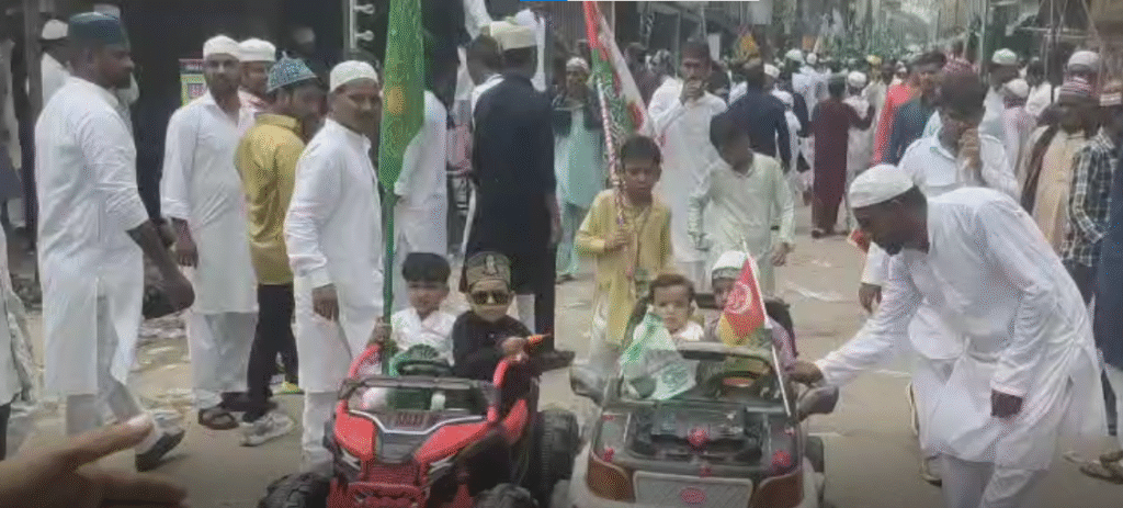उझानी। इस्लाम धर्म के प्रवर्तक हजरत मोहम्मद साहब की यौमे पैदाइश के मुबारक मौके पर जश्ने ईद मिलादुन्नबी का जुलूस शहर में शानो-शौकत से निकाला गया। जुलूस में तमाम मजहबी झांकियां शामिल रहीं। जुलूस में जगह-जगह छबील तकसीम कर जुलूस का स्वागत किया गया। सरकार की आमद मरहबा और लब्बैक या रसूल अल्लाह के नारों की गूंज रही। जूलूस का शुभारंभ नगर की जामा मस्जिद से सदर डॉ. नईम उद्दीन ने किया। जूलूस जामा मस्जिदर से शुरू होकर बिल्सी रॉड, घण्टाघर चौराहे होता हुआ बदायूँ रोड स्थित मकबरे पर जाकर संपन्न हुआ। जुलूस में दीनी झांकियां और तिरंगे झंडे लगे वाहन शामिल रहे। जुलूस में नात ख्वानी पढ़ते हुए लोग आगे बढ़ रहे थे और एक दूसरे को मुबारकबाद दे रहे थे। इस बीच मुल्क की तरक्की व खुशहाली के लिए दुआ की गई। सुरक्षा व यातायात व्यवस्था के मद्देनजर एक तरफ कोतवाली प्रभारी निरीक्षक नीरज मलिक मय स्टाफ के जूलूस के साथ चल रहे थे वहीं दूसरी ओर यातायात उपनिरीक्षक राम लडोते राजपूत व रामसेवक राठौड़ अपने अपने हमराहियों के साथ नगर में मुस्तेद नजर आए । इस अवसर पर मोहम्मद सलाउद्दीन, जमीर खान, असलम सकलैनी, अनवर खान,मोहम्मद साजिद,आसिम उमर, मोहम्मद उवैद,महरवान अंसारी, शाकिर हुसैन,पूर्व विधायक हाजी मुसर्रत अली बिट्टन, असलम पहलवान, अमन अख्तर,मोहम्मद वाहिद,शाह आलम अंसारी आरी मौजूद थे!