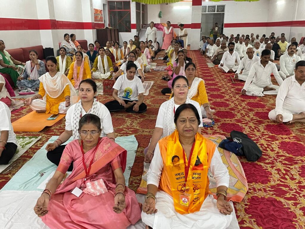 बदायूं। महिला पतंजलि योगपीठ, हरिद्वार के तत्वाधान में अयोजित प्रथम दिवसीय योगा सत्र का अध्यक्षता कर रहीं ज़िला प्रभारी उमा वार्ष्णेय ने कार्यक्रम प्रारम्भ करने की घोषणा की। तत्पश्चात गुरुद्वारा हाल, जोगीपुरा में विमलेश गुप्ता, सदर विधायक महेश चंद्र गुप्ता, साध्वी देवादिति दीदी के द्वारा दीप प्रजवल्लित करके कार्यक्रम का शुभारम्भ हुआ। गायत्रीमंत्र के साथ साध्वी देवादिति दीदी ने प्रथम दिन के योगा सत्र का शुभारम्भ किया। उन्होंने बिभिन्न रोगों में आसानों द्वारा उन रोगों को कैसे दूर किया जाये, इस सम्बन्ध में योगा करके बताया। तनावपूर्ण जीवन शैली को कैसे योगा द्वारा नियंत्रित कर सकते हैं, इस विषय पर अपने विचार से विस्तार से बताया। राज्य प्रभारी देवी दीदी एवं पश्चिमी उ.प्र. प्रभारी डॉ. इंदिरा गुप्ता ने भी अपने बिचारो से लाभान्वित किया। विधायक महेश चंद्र गुप्ता ने उपस्थित योग साधकों से कहा कि योग के द्वारा हम अपनी रोगों से लड़ने की शक्ति को विकसित कर अरोगी जीवन जी सकते हैं । आज काफी संख्या में योग साधकों ने देवादिति दीदी के विचारों को सुना। रश्मि गुप्ता, रीता गुप्ता, सीमा रस्तोगी, ज्योति गुप्ता, मुनमुन वर्मा, साधना शर्मा, कंचन रस्तोगी, शैली शर्मा सहित पंकज,गजेंदर गुप्ता , ऋषि वर्मा, राजीव, अमर पाल सिंह, सोहन पाल, देवेंदर वैश्य आदि भाइयों का सहयोग रहा। कार्यक्रम का संचालन रवीन्द्र वार्ष्णेय “रवि” ने किया।
