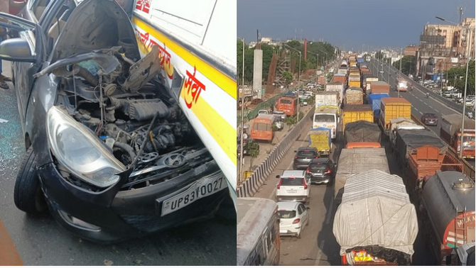 आगरा-मथुरा हाईवे पर अबुल उलाह की दरगाह के सामने सोमवार को एक भीषण सड़क हादसा हुआ। मथुरा की ओर से आ रहे एक ट्रक ने पहले एक कार को पीछे से टक्कर मार दी, फिर कार सड़कवेज की बस में जा घुसी। कार में कोई सवार नहीं था। हादसे के बाद ट्रक चालक ने भागने की कोशिश की, लेकिन इसी दौरान ट्रक ने दो और वाहन टक्कर मार दिए और अंततः अनियंत्रित होकर डिवाइडर पर चढ़ गया। इस दुर्घटना के कारण हाईवे पर लगभग आठ किलोमीटर लंबा जाम लग गया। प्रत्यक्षदर्शी नन्नू बघेल ने बताया कि वह फिरोजाबाद की ओर जा रहे थे, तभी दरगाह के पास पत्थरों से भरा ट्रक अचानक बसों के पीछे खड़ी कार में जा घुसा। भागने के प्रयास में ट्रक ने पीछे की ओर रिवर्स लेकर एक अन्य कार और कमर्शियल वाहन को टक्कर मारी। इसके बाद ट्रक पूरी तरह से नियंत्रण खो बैठा और डिवाइडर पर चढ़ गया। मौके पर पहुंची पुलिस जाम खुलवाने और वाहनों की व्यवस्था करने में लगी हुई है। फिलहाल दुर्घटना की जांच शुरू कर दी गई है। ट्रक चालक की पहचान और उसके खिलाफ सख्त कानूनी कार्रवाई की तैयारी की जा रही है।