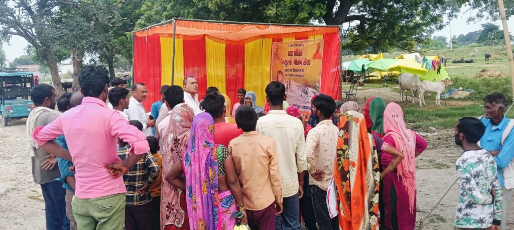 भाजपा नेता डॉ. शैलेश पाठक ने नाव से बाढ़ प्रभावित गांवों में पहुंचाया भोजन
