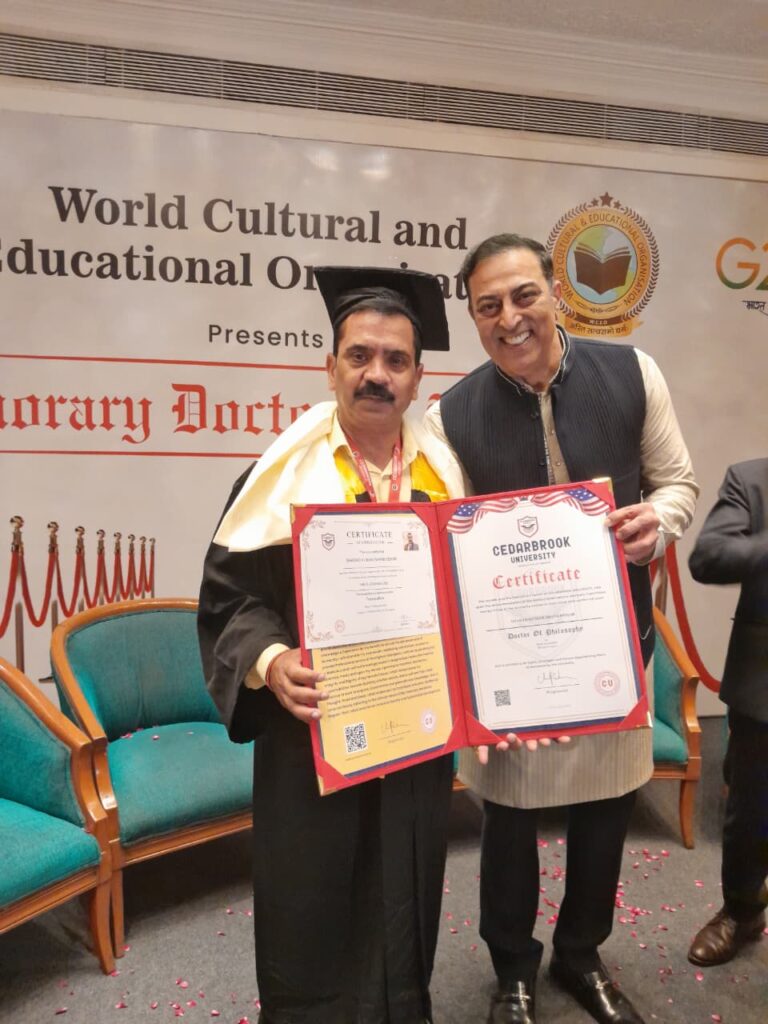 अमेरिका की यूनिवर्सिटी ने शरद शंखधार को डाक्टरेट की मानद उपाधि से सम्मानित किया