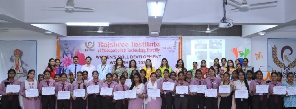 बरेली। राजश्री इंस्टीट्यूट ऑफ मैनेजमेन्ट एंड टेक्नोलॉजी, पीलीभीत रोड, बरेली के संस्थान परिसर में एक दिवसीय महिला कौशल विकास आधारित कार्यशाला “आभार” का आयोजन किया गया। जिसमें छोटी सी आशा नामक एन.जी.ओ. के तत्वाधान में नारी शक्ति के उत्सव के रूप में महिलाओं को स्वावलम्बी एवं आत्मनिर्भर बनाने हेतु प्रशिक्षण प्रदान किया गया। कार्यशाला का उद्घाटन संस्थान की वाइस चेयरपर्सन डॉ॰ मोनिका अग्रवाल, एन.जी.ओ. छोटी सी आाशा की फाउन्डर एवं विशिष्ट अतिथि पारूल धवन मलिक ने माँ सरस्वती का दीप प्रज्जलन कर किया। मुख्य अतिथि ने अपने व्यक्त्वय में कार्यक्रम की प्रतिभागी महिलाओं को सम्बोधित करते हुये बताया कि हमारे समाज की रीढ़ की तरह प्रत्येक महिला अद्म्य शक्ति एवं असीमित सामर्थ्य को धारण करने वाली है और नारी शक्ति का ये उत्सव महिलाओं के कौशल विकास और उन्हें एक अस्थायी आजीविका का एक साधन प्रदान करने का प्रयास है। संस्थान की वाइस चेयरपर्सन डॉ॰ मोनिका अग्रवालन ने बताया कि राजश्री ग्रुप ऑफ इंस्टीट्यूटशन महिलाओं को आत्मनिर्भर बनाने की दिशा में मंच प्रदान करता है। जिसमें आज की कार्यशाला ने हस्तशिल्प आधारित कलाकृतियाँ बनाने का प्रशिक्षण एवं अन्य स्वावलम्बन कार्यक्रम बेहद महत्वपूर्ण है। कार्यशाला के समापन पर प्रतिभागियों को प्रमाण-पत्र प्रदान किये गये। कार्यशाला के सफल आयोजन में संस्थान के डीन प्रो साकेत अग्रवाल, निदेशक प्रो पंकज कुमार शर्मा, रजिस्ट्रार दुष्यन्त माहेश्वरी, प्राचार्य डॉ मुकेश पाल गंगवार, पूजा भास्कर सिंह, वैशाली भारद्वाज का सहयोग रहा एवं मंच का संचालन दीपाली सिंह ने किया।