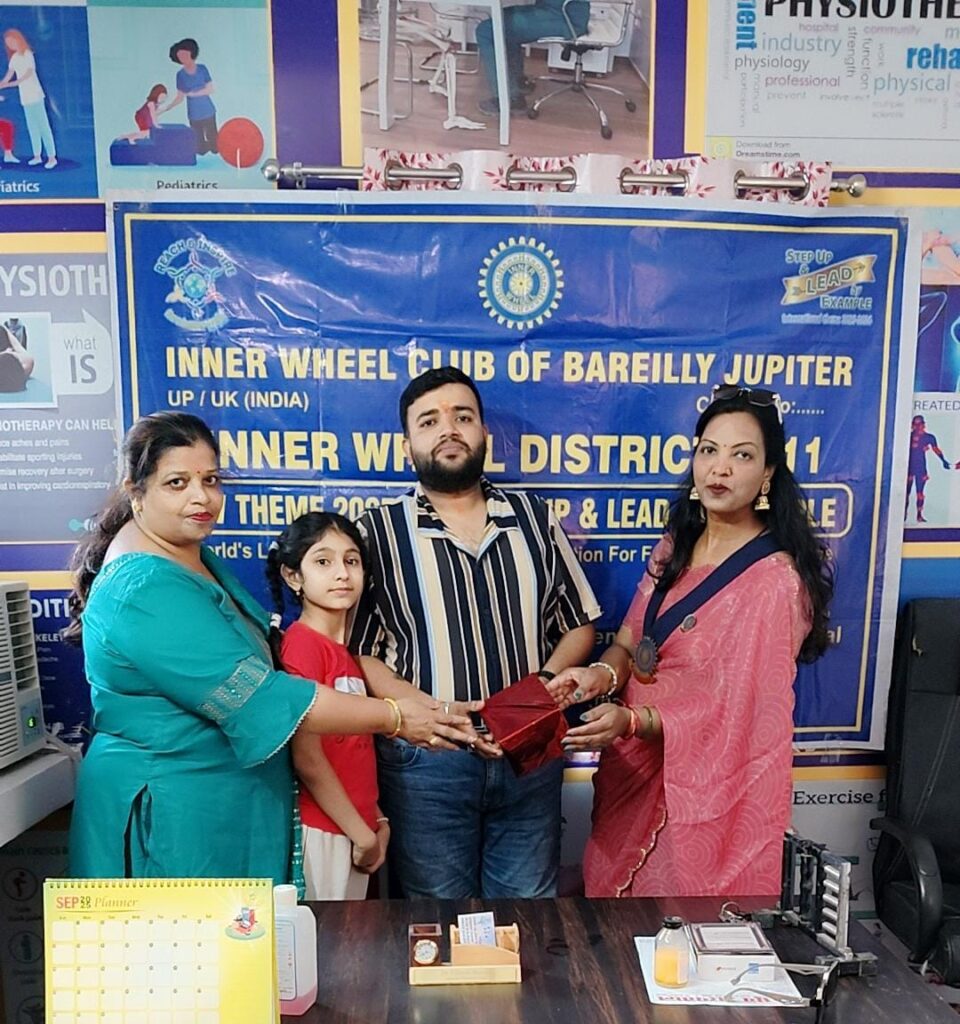 बरेली। इनर व्हील क्लब बरेली जुपिटर द्वारा डॉक्टर उत्कर्ष शर्मा को उनके अच्छे कार्यों के लिए सम्मानित किया गया ऑर्थोपेडिक डे मनाते हुए क्लब की चार्टर प्रेसिडेंट रचना सक्सेना द्वारा सर्टिफिकेट दे कर सम्मानित किया गया डॉक्टर के उज्जवल का भविष्य की कामना की व समय-समय पर क्लब के द्वारा लगाए जाने वाले कैंप में फ्री सेवा देने का डॉक्टर साहब ने आश्वासन दिया कार्यक्रम में क्लब की प्रेसिडेंट रचना सक्सेना व वाइस प्रेसिडेंट मोनिका शर्मा उपस्थित रही।