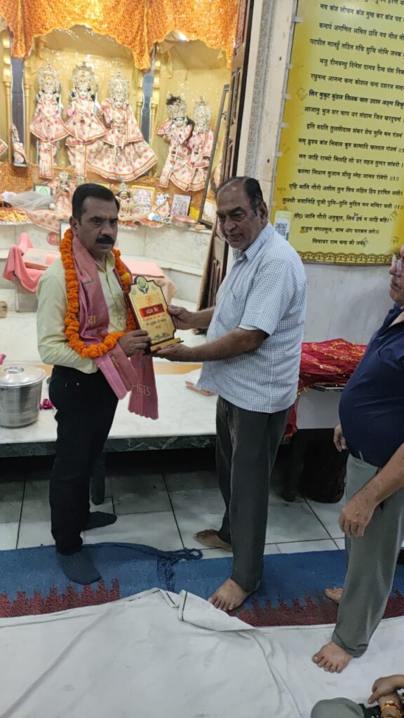 बदायूं के श्री रघुनाथ मंदिर में वरिष्ठ पत्रकार एवं साहित्यकार शरद शंखधार का नागरिक अभिनन्दन किया