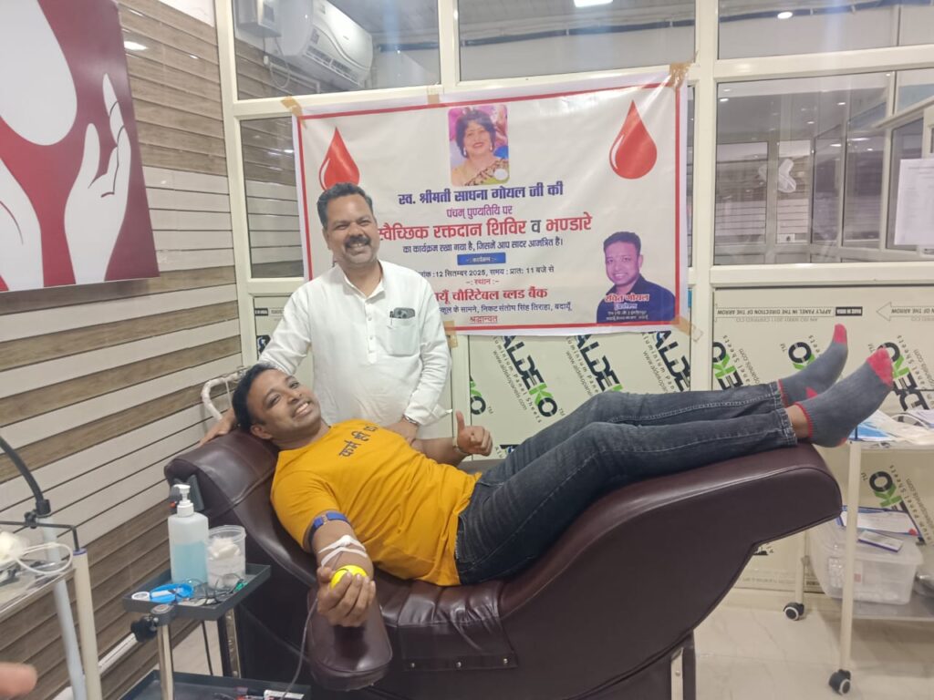 बदायूं। स्व. साधना गोयल की पंचम् पुण्यतिथि के अवसर पर वरिष्ठ समाजसेवी सुबोध गोयल व डायरेक्ट ऐस काॅलेज रचित गोयल द्वारा बदायूॅं चैरिटेबल ब्लड बैंक पर स्वैच्छिक रक्तदान शिविर व भण्डारे का आयोजन किया गया। इस अवसर पर स्व. साधना गोयल की फोटो पर फूलमाला पहनाकर उनका ध्यान किया गया और श्रद्धांजलि अर्पित की गई। इस दौरान उपस्थित लोगों ने स्व. साधना गोयल के जीवन और उनके द्वारा समाज में किए गए योगदान को याद किया। डायरेक्ट रचित गोयल ने बताया कि उनकी माता जी की याद में यह आयोजन किया गया है। उन्होंने कहा कि स्व. साधना गोयल एक आदर्श व्यक्तित्व थीं और उनके परिवार के लिए वे एक प्रेरणा का स्रोत थीं। उनकी याद में यह आयोजन करके उनके प्रति सम्मान व्यक्त किया गया है। रचित गोयल ने कहा कि उनकी माता जी ने हमेशा अपने परिवार और समाज के प्रति सेवा भाव और सहानुभूति की भावना को बढ़ावा दिया और उनकी याद में यह आयोजन समाज सेवा के प्रति उनकी प्रतिबद्धता को दर्शाता है। स्वैच्छिक रक्तदान शिविर में इंजी. रचित गोयल के साथ राजीव कुमार गुप्ता (जिलाध्यक्ष, भाजपा), संजीव कुमार गुप्ता, डाॅ. चित्रांश, डाॅ. अजीत पाल सिंह, सुशान्त सिंह, जहीर अहमद, नवनीत यादव, शरद पटेल, संदीप गुप्ता, अभिषेक, आंचल पटेल व अन्य लोगों ने रक्तदान किया और राहगीरों को भण्डारे का प्रसाद खिलाया। इस आयोजन के माध्यम से स्व. श्रीमती साधना गोयल की याद में एक महत्वपूर्ण कार्य किया गया और समाज में रक्तदान के महत्व के बारे में जागरूकता बढ़ाने का प्रयास किया गया।
