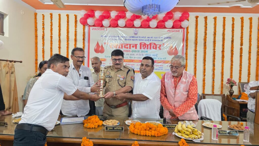 बदायूं।।इंजीनियर डे के उपलक्ष्य में लोक निर्माण विभाग प्रांगण में आयोजित रक्तदान शिविर में लोगों ने बढ़-चढ़कर उत्साह के साथ रक्तदान किया ।इस रक्तदान शिविर में पुलिसकर्मियों ने भी रक्तदान करके पुलिसिंग की ओर बेहतर संदेश दिया है । रक्तदान करने वाले पुलिसकर्मियों की लोगों ने प्रशंसा की। लोक निर्माण विभाग द्वारा हर वर्ष इंजीनीयर डे के उपलक्ष्य में रक्तदान शिविर आयोजित किया जाता है । इस बार भी रक्तदान शिविर का आयोजन किया गया । इस दौरान वरिष्ठ पुलिस अधीक्षक डॉ0 बृजेश कुमार सिंह तथा अपर जिलाधिकारी प्रशासन अरुण कुमार ने रक्तदान सिविल शिविर का फीता काटकर शिविर का आयोजन किया गया । रक्तदान शिविर में रक्त एकत्र करने बरेली आईएमए ब्लड बैंक एवं बदायूं चैरिटेबल ब्लड बैंक की टीम पहुंची । रक्तदान शिविर में राजकीय पॉलिटेक्निक के तमाम छात्र-छात्राएं पहुंचे ।इसके अलावा पुलिस लाइन से प्रशिक्षण प्राप्त कर रहे पुलिसकर्मी भी रक्तदान करने आए । पुलिसकर्मियों ने उत्साहपूर्वक रक्तदान किया । रक्तदान शिविर में कुल 131 लोगों ने बढ़-चढ़कर रक्तदान किया गया । इस शिविर में लोक निर्माण विभाग, बाढ़ खंड, सिंचाई विभाग, लघु सिंचाई एवं जिला पंचायत से आए इंजीनियरों ने खुद एवं परिवार के सदस्यों के साथ रक्तदान किया । रक्तदान करने वाले रक्तदाताओं के लिए प्रमाण पत्र देकर सम्मानित किया गया । इसके साथ ही प्रत्येक रक्तदाता के लिए फल के रूप में सेब भी खिलाये गये । रक्तदान शिविर में आने वाले प्रत्येक व्यक्ति के लिए भोजन की व्यवस्था भी की गई। वरिष्ठ पुलिस अधीक्षक डॉ बृजेश कुमार सिंह ने कहा कि रक्तदान सबसे बड़ा दान है । प्रत्येक व्यक्ति के लिए साल में कम से कम एक बार रक्तदान अवश्य करना चाहिए ।