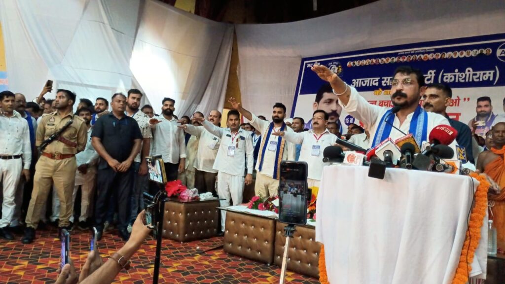 बरेली। आजाद समाज पार्टी काशीराम ने बरेली संजय कम्युनिटी हॉल में प्रबुद्ध जन सम्मेलन का आयोजन किया जिसमें कार्यक्रम के मुख्य अतिथि राष्ट्रीय अध्यक्ष एडवोकेट चंद्रशेखर आजाद ने दीप जलाकर कार्यक्रम का शुभारंभ किया कार्यक्रम में हजारों की संख्या में पहुंचे कार्यकर्ता ।