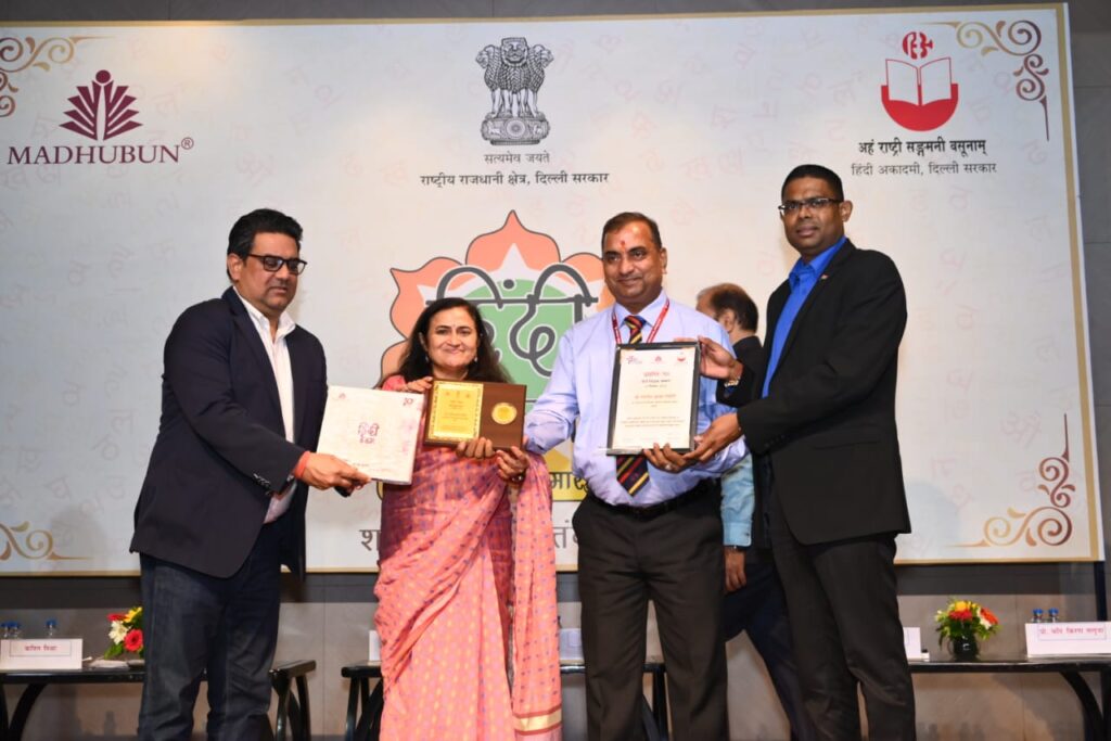 बरेली। श्री गुलाब राय मॉन्टेसरी सीनियर सेकेंडरी स्कूल, नैनीताल रोड ब्रांच के वरिष्ठ हिन्दी शिक्षक रजनीश त्रिवेदी को नई दिल्ली में हिन्दी दिवस पर आयोजित एक विशिष्ट समारोह में सम्मानित किया गया। हिन्दी अकादमी दिल्ली सरकार एवं मधुबन एजुकेशनल बुक्स की ओर से भाषा उत्सव “हिंदी हैं हम”- कार्यक्रम का आयोजन सीरी इंस्टीट्यूशनल एरिया ब्लॉक ए हौज खास, नई दिल्ली के पीएचडीसीसीआई (PHDCCI) सभागार में हुआ। इस मौके पर अतिथियों द्वारा देश भर के चुने गए 357 हिन्दी शिक्षकों को स्मृति चिन्ह और प्रशस्ति पत्र देकर सम्मानित किया गया। कार्यक्रम में मुख्य अतिथि कला एवं संस्कृति मंत्री दिल्ली सरकार कपिल मिश्रा, विशिष्ट अतिथि सचिव कला संस्कृति एवं साहित्य दिल्ली सरकार आर्ईएएस डॉ रश्मि सिंह, भाषा विशेषज्ञ प्रोफेसर चांद किरण सलूजा, भाषाविद डॉ सुरेश पंत, राजदूत सूरीनाम अरुण कोएमर हार्डियन, वाणिज्यिक सलाहकार ईरान दूतावास डॉ होसैन बामिरी, अखिल विश्व हिंदी समिति टोरंटो ओंटारियो, कनाडा के अध्यक्ष गोपाल बघेल, कूटनीतिज्ञ विशेषज्ञ एवं पूर्व सलाहकार गृहमंत्री भारत सरकार ब्रिगेडियर संजय अग्रवाल, समाचार वाचक सईद अंसारी, अंतरराष्ट्रीय हिंदी समिति के अध्यक्ष डॉ प्रवीन गुप्ता, राजभाषा संस्कृति मंत्रालय के सहायक निदेशक राजेश गुप्ता, सांस्कृतिक विभाग चीन दूतावास नई दिल्ली के सचिव शु निंग उपस्थित रहे। इस अवसर पर कार्यक्रम आयोजक नवीन राजलानी, हिमानी मित्तल आदि उपस्थित रहे।