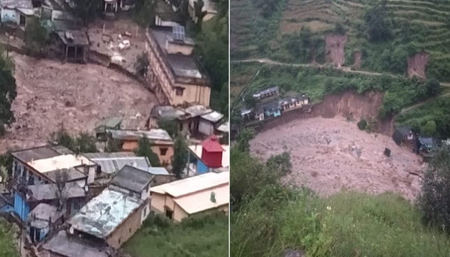 चमोली। में नगर पंचायत नंदानगर के वार्ड कुन्तरि लगाफाली में बादल फटने के कारण मलबा आने से छह भवन पूरी तरह से क्षतिग्रस्त हो गए। साथ ही सात लोग लापता हैं और दो को बचा लिया गया है। राहत एवं बचाव कार्य जारी है। साथ ही धुर्मा गांव में भी भारी वर्षा के कारण मकानों को नुकसान पहुंचा है। उधर, देहरादून जिले में गुरुवार को सभी स्कूल व आंगनबाड़ी केंद्रों में अवकाश रहेगा! चमोली के जिला मजिस्ट्रेट संदीप तिवारी ने समाचार एजेंसी एएनआई को बताया कि चमोली जिले के नंदानगर घाट क्षेत्र में बुधवार रात बादल फटने से भारी नुकसान हुआ है। नंदानगर के कुन्तरि लगाफाली वार्ड में छह घर मलबे में दब गए। जिलाधिकारी ने बताया कि सात लोग लापता हैं, जबकि दो को बचा लिया गया है। एसडीआरएफ टीम नंदप्रयाग पंहुच गई है, एनडीआरएफ भी नंद प्रयाग के लिए गोचर से नंदप्रयाग को रवाना हो गई। सीएमओ द्वारा जानकारी दी गयी कि मेडिकल टीम, तीन 108 एम्बुलेंस मौके पर रवाना कर दी गई हैं। नंदानगर तहसील के धुर्मा गांव में भी भारी वर्षा के कारण 4-5 भवनों को क्षति पहुंचने की सूचना प्राप्त हुई है, राहत की बात है कि जनहानि नहीं हुई है। मोक्ष नदी का जलस्तर बढ़ा है।