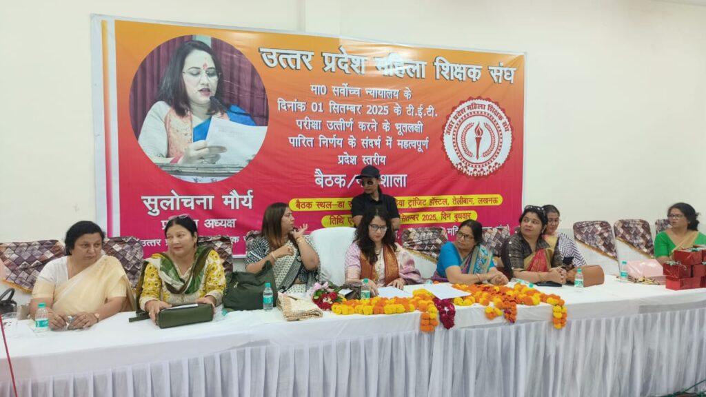 लखनऊ। उत्तर प्रदेश महिला शिक्षक संघ द्वारा प्रदेश स्तरीय एक मीटिंग राम मनोहर लोहिया सभागार में आयोजित की गई। जिसमें प्रदेश के सभी जिलों से जिला कार्यकारिणी टीम ने प्रतिभाग़ किया ।मीटिंग की अध्यक्षता प्रदेश अध्यक्ष आदरणीय सुलोचना द्वारा प्रदेश स्तरीय बैठक टेट को समाप्त करने के लिए की गई। प्रदेश अध्यक्ष ने सभी जिलों से आई जिले की समस्याओं को सुना और पूर्ण सहयोग का आश्वासन दिया।