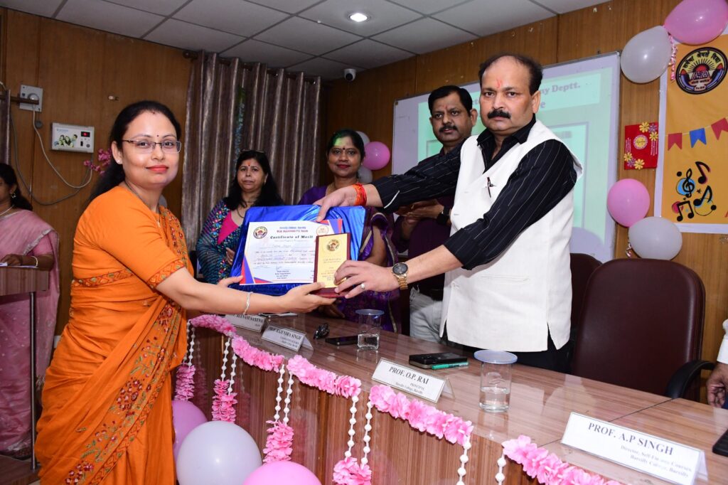 बरेली। बरेली कॉलेज, बरेली के एमएड विभाग में पीजी फोरम के तत्वाधान में सत्र 2024-25 के विद्यार्थियों के लिए वार्षिकोत्सव एवं प्रतिभा सम्मान समारोह ‘सुस्मृतिम्’ का आयोजन हुआ। कार्यक्रम का शुभारम्भ प्राचार्य प्रो. ओ.पी. राय, निदेशक स्ववित्तपोषित पाठ्यक्रम प्रो. ए.पी. सिंह, चीफ प्रॉक्टर प्रो. आलोक खरे, परीक्षा नियंत्रक प्रो. राजेन्द्र सिंह, डीन स्टूडेंट वेलफेयर प्रो. बीनम सक्सेना तथा मीडिया प्रभारी प्रो. ए.सी. त्रिपाठी द्वारा दीप प्रज्वलन एवं मां सरस्वती पर माल्यार्पण से हुआ। स्वागत उद्बोधन विभाग प्रभारी डॉ. प्रतिभा शर्मा ने दिया। सम्पूर्ण सत्र के दौरान आयोजित विभिन्न प्रतियोगिताओं में विजयी एमएड प्रथम एवं द्वितीय वर्ष के विद्यार्थियों दीप्ति ध्यानी, सुरभि गंगवार, नेहा, गीतू सोनकर, श्वेता सक्सेना, शीतल गंगवार, रितिका सक्सेना, अदिति सक्सेना, जैशिका, कमल पटेल, स्मिता गंगवार, कशिश फातिमा, गुलबर्ग, फरहीन सिद्दीकी व आलोक शर्मा आदि को पुरस्कृत किया गया। साथ ही वर्ष 2025 में विश्वविद्यालय की मुख्य परीक्षा में कॉलेज टॉपर रही एमएड द्वितीय वर्ष की छात्रा राशि मिश्रा और प्रथम वर्ष की छात्रा फलक मिर्जा को सम्मानित किया गया। 2025 में नेट/जेआरएफ उत्तीर्ण छात्राओं वंदना गौतम, मीनाक्षी सिंह, अपूर्वा सिंह व श्वेता सक्सेना का भी सम्मान किया गया। प्राचार्य एवं सभी अतिथियों ने विद्यार्थियों को उज्ज्वल भविष्य की शुभकामनाएँ दीं। कार्यक्रम में विभागीय शिक्षक डॉ. गौसिया, डॉ. सारा बासु मौजूद रहे। संचालन डॉ. अमिता गुप्ता तथा धन्यवाद ज्ञापन डॉ. अजिता सिंह तिवारी ने किया। इस अवसर पर बीएड विभाग से प्रो. कविता बिश्नोई, प्रो. मोनिका अग्रवाल, प्रो. भारती डोगरा, डॉ. राकेश कुमार, शिक्षाशास्त्र विभाग से प्रो. दीप्ति जौहरी, डॉ. मनवीर सिंह, सर्वेश कुमार, डॉ. चन्द्र प्रकाश यादव, देवराज गौतम, भूगोल विभाग से डॉ. अक्षय कुमार शुक्ल, डॉ. नमिता यादव, डॉ. नाजिया खान, डॉ. सीता राम, पंकज कुमार, डॉ. गिरीश गंगवार तथा जनसंचार एवं पत्रकारिता विभाग से डॉ. रमेश त्रिपाठी भी उपस्थित रहे।