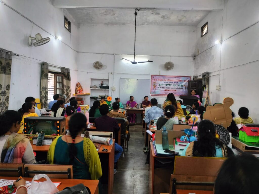बदायूं। जिला शिक्षा एवं प्रशिक्षण संस्थान में क्राफ्ट एवं पपेट की प्रतियोगिता का आयोजन किया गया इसमें प्रत्येक विकास क्षेत्र से प्राथमिक तथा उच्च प्राथमिक स्तर में विज्ञान भाषा गणित व सामाजिक विज्ञान विषय में अपने-अपने प्रस्तुतीकरण विभिन्न कल क्राफ्ट पोपट्री के माध्यम से दिया गया सभी ने अपने प्रस्तुतीकरण में छात्रों के लर्निंग आउटकम तथा निपुण लक्ष की प्राप्ति पर केंद्रित होकर को केंद्र बिंदु बनाया गुप्त कार्यक्रम में राजकीय महिला डिग्री कॉलेज की असिस्टेंट प्रोफेसर डॉ भावना व डॉक्टर सरिता सिंह निर्णायक मंडल में उपस्थित रहे कार्यक्रम की नोडल निशा यादव ने कार्यक्रम की विस्तृत रूपरेखा सबको बताई तथा सेवारत प्रभारी डॉक्टर अमित शर्मा ने सभी प्रतिभागियों का उत्साह वर्णन करते हुए सभी को समस्त प्रतियोगिताओं में प्रतिभाग करने हेतु प्रेरित किया तथा बताया कि हम सदैव सकारात्मक दृष्टिकोण से पूर्ण मनोयोग से अपने कार्य को करते रहे निश्चित ही एक दिन हम लोगों को सफलता प्राप्त होगी डॉ रजनी सिंह प्रवक्ता डाइट बदायूं द्वारा कहा गया की प्रतिभागी सदैव नवीनता से प्रेरित रहे तथा प्रवक्ता दिलीप कुमार द्वारा कार्यक्रम में सहयोग प्रदान किया गया तत्पश्चात कार्यक्रम के परिणाम को सभी प्रतिभागियों के मध्य घोषित किया गया जिसमें विनीत सोलंकी नीरज कुमार अभिषेक सिंह लक्ष्मी गंगवार प्रथम स्थान पर रहे कार्यक्रम के अंत में वरिष्ठ प्रवक्ता डाइट राकेश कुमार सेवारत प्रभारी डॉक्टर अमित शर्मा निशा यादव द्वारा सभी प्रतिभागियों को प्रमाण पत्र वितरित किए गए अंत में सभी का धन्यवाद के साथ कार्यक्रम का समापन किया गया