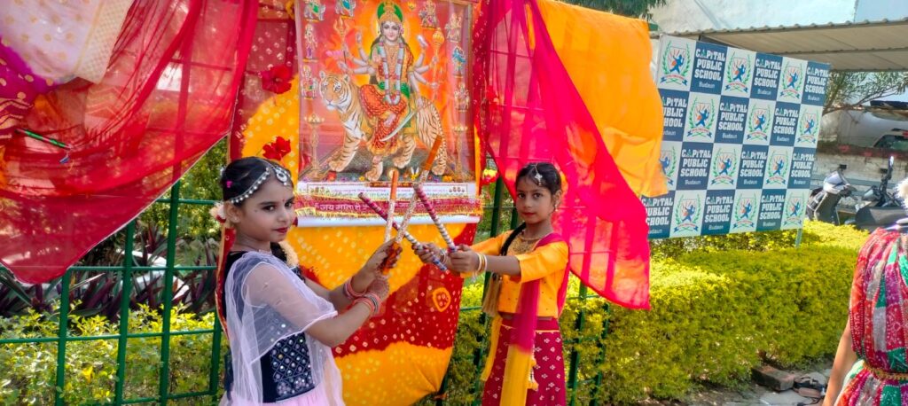 बदायूं। कैपिटल पब्लिक स्कूल में शरदीय नवरात्र के अवसर पर डांडिया कार्यक्रम का आयोजन बडे उत्साह और धूमधाम से सम्पन्न हुआ। इसमें विद्यालय के सभी विद्यार्थियों ने बढ़-चढ़ कर भाग लिया। विद्यालय की प्रधानाचार्य मीनू सिंह ने विद्यार्थियों को बताया कि डांडिया नृत्य गुजरात का एक प्रसिद्ध लोकनृत्य है इसकी उत्पत्ति भक्तिमय गरबा नृत्य से हुई है, जो देवी दुर्गा और शक्तिशाली राक्षस राज महिषासुर के बीच बुद्ध दर्शाने के लिए किया जाता है। साथ ही यह डांडिया नृत्य भगवान कृष्ण और राधा की रास लीला से भी प्रेरित है जो इसे एक भक्तिमय और आनन्द मय उत्सव का रूप देता है। कक्षा 3 से लेकर कक्षा 8 तक विद्यार्थियों ने अनेक गीतों पर नृत्य करके अपनी कला का प्रदर्शन किया। नृत्य के लिए लडकियों ने मिररवर्क, कवाई वाले परम्परागत गुजराती लुक वाले मल्टीकलर चनिया चोली और लहंगे पहने और लड़कों ने कुर्ता पायजामा साथ ही सभी ने हाथों में सजे हुए सुन्दर सुन्दर डाड़िया थे। बच्चों के साथ साथ स्टाफ भी परिपूर्ण दिखाई दिया ,प्रधानाचार्य ने डांडिया के बारे में और जानकारी देते हुए कहा कि यह नृत्य गुजरात और राजस्थान की सांस्कृतिक विरासत का अहम हिस्सा है। यह नृत्य शक्ति और बुराई पर अच्छाई का प्रतीक है जहाँ डांडिया की छडे देवी की तलवारो का प्रतिनिधित्व करती है। अंत मे प्रधानाचार्य ने सभी को नवरात्रि की और अधर्म पर धर्म की, असत्य पर सत्य की विजय का प्रतीक विजयदशमी की हार्दिक शुभकामानॉए देते हुए कहा कि ये त्यौहार सभी के जीवन में खुशियों और आनन्द लेकर आए। इस अवसर पर ममता सक्सेना, अमित जौहरी पूनम यादव, रूपा सक्सेना, प्रियंका भटनागर, किव्या सिंह मानसी शर्मा, कुमकुम, दीका यादव, दीक्षा कश्यप, वन्दना आदि का योगदान सराहनीय रहा।