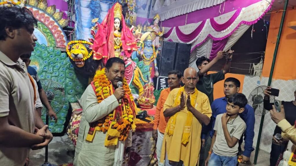 बदायूँ ।दातागंज तहसील के गाँव सैंजनी में भव्य दुर्गाजागरण का आयोजन किया गया, जिसमें सभी ग्रामवासियों नें रातभर एकासन पर बैठकर अपनी भक्ति का परिचय दिया। श्री दुर्गा कमेटी के तत्वावधान में हुए कार्यक्रम का शुभारंभ माँ की अखंड ज्योति जलाकर किया गया। दातागंज विधान सभा क्षेत्र के विधायक राजीव कुमार उर्फ बब्बू भैया ने माता महामाई के पूजन मे हिस्सा लिया. उन्होंने कहा, माताओं बहिनो के लिए बहुत ही शुभ होता है नव दुर्गा का व्रत. पूरे नौ दिन तक उपवास रखकर अपने परिवार की खुशहाली के लिए माँ दुर्गा से प्रार्थना करती है माताए और बहिने।यह हमारी हिंदूआस्था के प्रतीक का ऐसा पर्व है जो पूरे नौ दिन तक मनाया जाता है. इस पर्व पर हम सभी को माताओं बहिनों के सम्मान करने और उनकी सुरक्षा करने का संक्ल्प लेना चाहिए. बरेली जिले के आँवला से पधारी दुर्गाजारण पार्टी के कलाकारों ने भव्य झाँकियों के साथ माता रानी की भेंटे और भजन अपने प्रस्तुतकर समां बाँध दिया. रातभर श्रृद्धालु भक्तिसागर में डुबकी लगाते रहे। आयोजन में ठाकुर अभय प्रताप सिंह, ठाकुर आशीष कुमार, राजा भैया तथा सोनू भैया सहित सभी भक्तगणों नें माता महामाई का पूजन कर विधायक श्री राजीव कुमार सिंह फूलमालाएं पहनाकर भव्य स्वागत किया। आयोजन में माता रानी के सभी भक्तों का विशेष सहयोग रहा।भगवती भक्त तारा रानी की कथा के बाद आरती के साथ जागरण का विश्राम हुआ. भक्तों ने चना हलुवा का प्रसाद ग्रहण कर माता रानी से समृद्ध और सशक्त भारत बनाने की मन्नत माँगी।