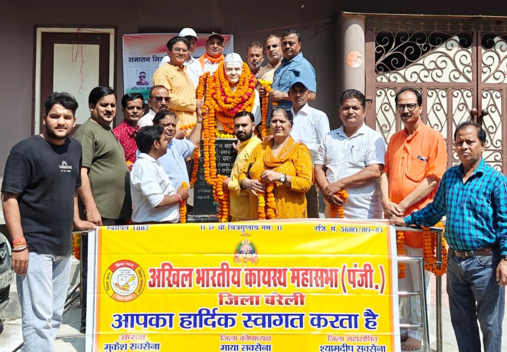 बरेली । अखिल भारतीय कायस्थ महासभा के अध्यक्ष मुकेश सक्सेना की अध्यक्षता में पूर्व प्रधानमंत्री स्व. लाल बहादुर शास्त्री जी की 122 वीं जयंती पर फ़र्रासी टोला स्थित लाल बहादुर शास्त्री जी की प्रतिमा पर माल्यापर्ण किया, और मिष्ठान वितरण किया। अध्यक्ष मुकेश सक्सेना ने कहा जय जवान, जय किसान” का नारा गुदड़ी के लाल भारत के दूसरे प्रधानमंत्री लाल बहादुर शास्त्री ने दिया था। यह नारा उन्होंने अक्टूबर 1965 में भारत-पाकिस्तान युद्ध के दौरान देश के जवानों और किसानों को प्रोत्साहित करने के लिए दिया था। जो आज भी प्रचलित है। माल्यापर्ण वीरेन्द्र रायजादा, सुधीर मोहन, राजेश सक्सेना, विधान रॉय, संतोष कुमार सक्सेना, श्यामदीप सक्सेना, सुनील कुमार सक्सेना, मंजू लता सक्सेना, मनोहर लाल जौहरी, अमित आनंद, संजीब कुमार सक्सेना, अंश सक्सेना, संदीप सक्सेना, संजय बिसरिया आदि ने किया। अंत में अध्यक्ष मुकेश सक्सेना ने सभी का आभार व्यक्त किया।