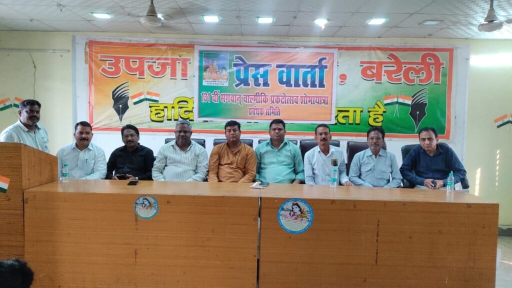 बरेली। विगत 130 वर्षों से चली आ रही परंपरा को आगे बढ़ाते हुए इस वर्ष 7 अक्टूबर को भगवान महर्षि वाल्मीकि प्रकटोत्सव पर भव्य एवं विशाल शोभायात्रा निकाली जाएगी। यह शोभायात्रा शहर के विभिन्न मार्गों से होते हुए अपने परंपरागत स्थान प्राचीन वाल्मीकि मंदिर, नई बस्ती सिटी सब्जी मंडी पर संपन्न होगी। शोभायात्रा अध्यक्ष अंशु आर्य ने बताया कि इस बार शोभायात्रा में सामाजिक सद्भाव एवं सनातन धर्म का संदेश देती 100 से अधिक झांकियां शामिल होंगी। विशेष आकर्षण के रूप में चंदौसी से काली माता की झांकी एवं काली अखाड़ा भी शोभायात्रा में शामिल होंगे। बरेली शहर के विभिन्न क्षेत्रों से आने वाली झांकियां शोभा यात्रा की भव्यता को और बढ़ाएंगी। शोभायात्रा अध्यक्ष ने नगरवासियों से इसमें सम्मिलित होने का आह्वान करते हुए शांति एवं अनुशासन बनाए रखने की अपील की। उन्होंने स्पष्ट किया कि शोभायात्रा में किसी भी प्रकार के अस्त्र-शस्त्र का प्रयोग पूर्णतः प्रतिबंधित रहेगा। कार्यक्रम में जिले के सभी जनप्रतिनिधि एवं अधिकारीगण उपस्थित रहेंगे। आयोजन समिति में अंशु आर्या, योगेश कुमार बंटी, विशाल सिंह बिंदु , उमेश कठेरिया , अजय रत्नाकर एवं हरीश बाबू वाल्मीकि, हरि सिंह वरदान , अमरीश कठेरिया , प्रभात कुमार सोनू लाल, अंकित आर्य, अंकुश आर्य, सुनील भारत, हरबंस सिंह, विजय वाल्मीकि, सचिन, रजत सिंह, राघव रत्नाकर, आदित्य राय, लाखन सिंह, पारस सिंह, सिद्धार्थ सिंह, सनी लाल व आकाश सिंह प्रमुख रूप से शामिल हैं।