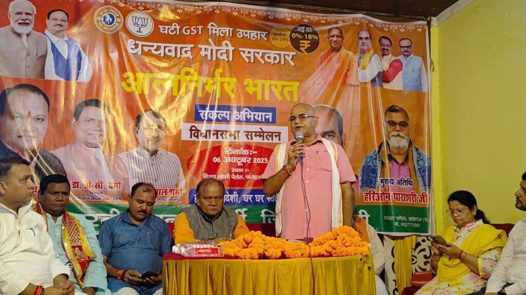 बरेली। भारतीय जनता पार्टी जिला बरेली के तत्वावधान में मीरगंज विधानसभा के फतेहगंज पश्चिमी स्थित विजय लक्ष्मी पैलेस में आत्मनिर्भर भारत संकल्प अभियान के तहत एक सम्मेलन का आयोजन किया गया। कार्यक्रम में मुख्य अतिथि क्षेत्रीय कार्यसमिति सदस्य हरिओम पाराशरी रहे। सम्मेलन में बड़ी संख्या में व्यापारी, प्रबुद्धजन एवं भाजपा कार्यकर्ता उपस्थित रहे।कार्यक्रम का उद्देश्य केंद्र सरकार की नीतियों का प्रचार-प्रसार करना और आत्मनिर्भर भारत के संकल्प को सशक्त बनाना रहा।मुख्य अतिथि हरिओम पाराशरी ने कहा कि भारत सरकार ने जीएसटी की दरों में कमी करके आम जनता और व्यापारियों को बड़ी राहत दी है। उन्होंने कहा कि प्रधानमंत्री नरेंद्र मोदी के “विकसित भारत 2047” के सपने को साकार करने की दिशा में यह अभियान एक महत्वपूर्ण कदम है। उन्होंने कहा कि इस अभियान के तहत स्वदेशी उत्पादों के उपयोग और विक्रय को बढ़ावा देने पर विशेष बल दिया जाएगा। जीएसटी दरों में कमी से न केवल व्यापार को प्रोत्साहन मिलेगा, बल्कि देश की अर्थव्यवस्था भी मजबूत होगी। सांसद छत्रपाल सिंह गंगवार ने कहा कि आत्मनिर्भर भारत संकल्प अभियान केवल एक कार्यक्रम नहीं, बल्कि एक जन आंदोलन है। इसका लक्ष्य हर भारतीय को सशक्त और स्वावलंबी बनाना है। उन्होंने कहा कि आत्मनिर्भरता की शुरुआत स्थानीय उत्पादों को प्राथमिकता देने से होती है। दीपावली के अवसर पर हर व्यक्ति स्वदेशी वस्तुएं खरीदे और व्यापारी स्वदेशी उत्पाद बेचें, इसके लिए व्यापक जागरूकता अभियान चलाया जाएगा।