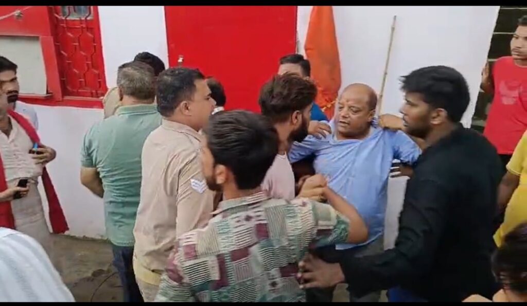 बरेली। थाना कोतवाली क्षेत्र के बरेली कॉलेज चौराहे के पास स्थित संकट मोचन मंदिर में बुधवार सुबह पुजारी और मोहल्ले के लोगों के बीच जमकर विवाद हो गया। मामला इतना बढ़ गया कि दोनों पक्षों में मारपीट और हंगामा हो गया। सूचना मिलते ही पुलिस मौके पर पहुंची और किसी तरह स्थिति को नियंत्रित किया। मंदिर के पुजारी रामशंकर पांडे ने बताया कि वह पिछले 17 वर्षों से अपनी पत्नी गीता के साथ मंदिर की सेवा कर रहे हैं और यहीं निवास करते हैं। उनका आरोप है कि मोहल्ले के कुछ लोग मंदिर की कीमती जमीन पर कब्जा कर अपनी पसंद का पुजारी बैठाना चाहते हैं। पंडित पांडे के अनुसार, बुधवार सुबह यादव मोहल्ले की कई महिलाएं और पुरुष अचानक मंदिर पहुंचे और उनके साथ मारपीट कर दी। इस दौरान उनका सामान बाहर फेंक दिया गया और मोबाइल फोन छीन लिया गया। आरोप है कि उन्हें धमकी दी गई कि “यहाँ से चले जाओ, नहीं तो जान से हाथ धोना पड़ेगा। सूचना पर पहुंची पुलिस ने किसी तरह माहौल शांत कराया, लेकिन भीड़ ने पुलिसकर्मियों से भी धक्का-मुक्की और बदतमीजी की। मौके पर मौजूद कुछ लोगों ने पूरा घटनाक्रम वीडियो में कैद कर लिया, जो अब सोशल मीडिया पर वायरल हो रहा है। पुलिस अधिकारियों ने बताया कि वायरल वीडियो के आधार पर आरोपियों की पहचान की जा रही है और जो भी दोषी पाया जाएगा, उसके खिलाफ सख्त कार्रवाई होगी। वहीं क्षेत्रवासियों का कहना है कि पुजारी के खिलाफ पहले से कई शिकायतें हैं और मंदिर में गलत गतिविधियां होती थीं। मोहल्ले के लोगों ने उन्हें कई बार मंदिर खाली करने के लिए कहा था, लेकिन उन्होंने स्थान नहीं छोड़ा, जिसके चलते आज विवाद भड़क गया। फिलहाल पुलिस ने पुजारी रामशंकर पांडे की तहरीर पर जांच शुरू कर दी है।