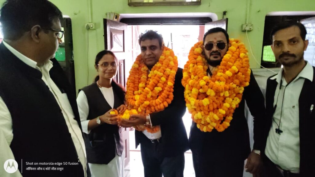 बदायूं। जिला बार एसोसिएशन के हाल में पवन कुमार गुप्ता अध्यक्ष जिला बार एसोसिएशन एवं वरिष्ठ अधिवक्तागण लोगों ने व साथी अधिवक्ता बंधुओ ने माल्यार्पण कर सदर सम्मान किया। 7 अक्टूबर के हुए कार्यक्रम के आयोजन के लिए संचालक की भूमिका निभा रहे दिवाकर वर्मा एडवोकेट को माल्यार्पण कर सादर धन्यवाद दिया व उनका सम्मान किया साथ ही एडवोकेट जितेंद्र सिंह उर्फ जीत ठाकुर 3 साल से मीडिया प्रभारी जिला बार एसोसिएशन के पद पर अपनी सेवाएं जिला बार एसोसिएशन को निस्वार्थ भावना से दे रहे हैं साथ ही मीडिया जगत के अलावा भी जिला बार एसोसिएशन बदायूं के अन्य कार्यक्रम के कामों में बढ़ चढ़कर हिस्सा लिया और अपनी पूरी मेहनत के साथ अपनी पूर्ण भूमिका निभाई एवं उसके साथ-साथ संपूर्ण वीडियो कवरेज एवं फोटोग्राफी की जिसके लिए वरिष्ठ अधिवक्ताओं ने और अध्यक्ष महोदय ने माल्यार्पण कर उनका सम्मान किया। इस मौके पर अध्यक्ष पवन कुमार गुप्ता एडवोकेट प्रभात सक्सैना एडवोकेट प्रशांत शर्मा एडवोकेट अंशुल गुप्ता एडवोकेट अनिल यादव एडवोकेट दिवाकर वर्मा एडवोकेट वाईपी सिंह जी एडवोकेट मेहताब हुसैन एडवोकेट सतीश यादव एडवोकेट योगेश यादव एडवोकेट प्रदीप शर्मा एडवोकेट आदि थे।
