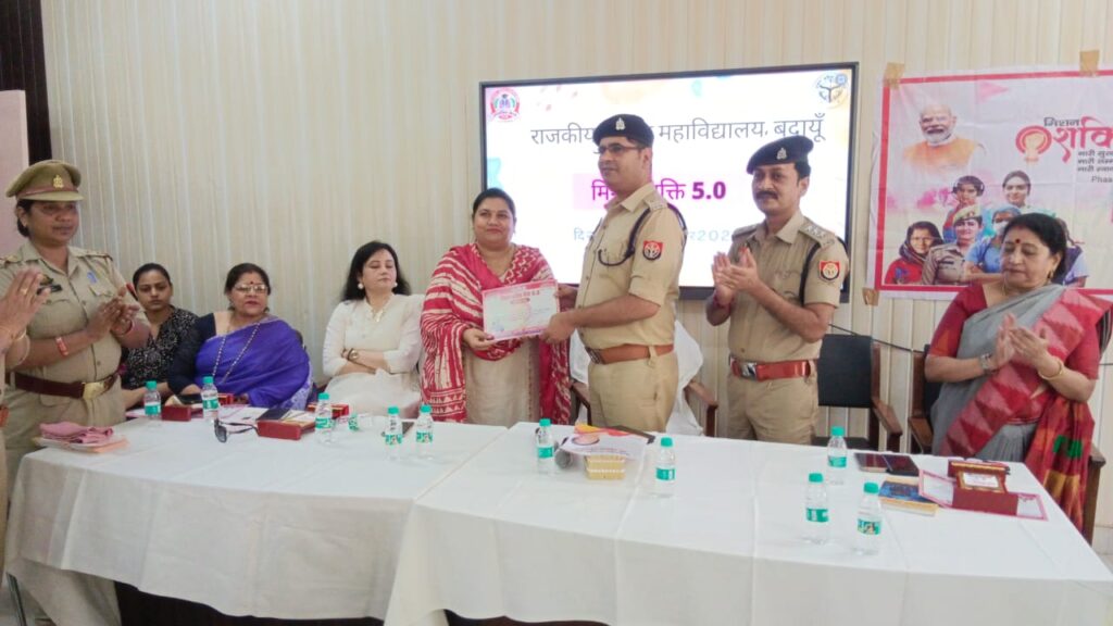 बदायूं। मिशन शक्ति पांचवा-5 के तहत राजकीय महाविद्यालय में हुए कार्यक्रम में अखिल भारतीय सर्व समाज महिला कुटुंब की संस्थापिका डॉ प्रतिभा गुप्ता एडवोकेट ,अध्यक्ष डॉ ममता नौगरैया , एवं उपाध्यक्ष महिशा सिंह को नारी सुरक्षा नारी सम्मान एवं नारी स्वावलंबन के लिए एसपी सिटी ने प्रतीक चिन्ह एवं प्रशस्ति पत्र देकर सम्मानित किया गया । सशक्त नारी समृद्ध प्रदेश नारी सुरक्षा सम्मान एवं स्वावलंबन के लिए समर्पित योगी आदित्यनाथ मुख्यमंत्री द्वारा नारी शक्ति राष्ट्र शक्ति है ।उत्तर प्रदेश ने ठान लिया है कि अब कोई बेटी अपने सपनों का अधूरा नहीं छोड़ेगी। सुरक्षा, सम्मान और स्वावलंबन की तरह ही सशक्त समाज और समृद्ध राष्ट्र का आधार बनेगी। मिशन शक्ति महिला बीट प्रणाली और सेफ सिटी जैसी पहले हमारी उस दूर दृष्टि का प्रतीक है ,जिसमें नारी शक्ति को राष्ट्र निर्माण की सबसे बड़ी धुरी माना गया है। हमे एक ऐसा उत्तर प्रदेश बना रहे हैं, जहां हर बेटी हर माता, सुरक्षित हो ,आत्मनिर्भर हो और आने वाली पीढियों के लिए प्रेरणा बने। डॉ प्रतिभा गुप्ता एडवोकेट ने जिले में इस तरह के कार्यक्रम को आयोजित कर पुलिस विभाग की भूरि भूरि प्रशंसा की और कहा कि हमारे अनुभव के अनुसार जब हम 10th और 12th में पढ़ते थे तो पुलिस से डरते थे महिलाओं में बेटियों में एक संकोच होता था आज की युवा पीढ़ी में बेटियों में सरकार ने इस तरह के कार्यक्रम निर्धारित कर और जिले के एस पी सिटी एवं सी ओ सिटी और उनकी टीम के द्वारा इस तरह के सरकार द्वारा निर्धारित प्रोग्राम का आयोजन कर सच में एक प्रशंसनीय पहल है जो बेटियां पूर्व में संकोच करती थी सहमी रहती थी वह अब उनके पास तक पुलिस विभाग स्वयं चलकर उनके प्रोटेक्शन के लिए दिशा निर्देश दे देकर एवं उनके अधिकारों की जानकारी देकर निश्चय ही उनके हित में एक मजबूत स्तंभ का कार्य कर रहे हैं।