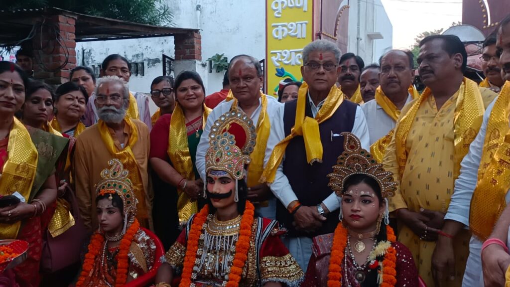 इसके आगे भारत सेवा ट्रस्ट पर भाजपा नेत्री श्रुति गंगवार के साथ भाजपा कार्यकर्ताओं तथा बजरंग दल के पदाधिकारियों आशु अग्रवाल, दिव्य बहादुर चतुर्वेदी, कमलेश वर्मा, जितेन्द्र कश्यप, देवेन्द्र जी, सोम जी, अखिलेश सिंह, अलंकृत सक्सेना, विशाल सक्सेना, विशाल मेहरोत्रा ने पुष्प वर्षा की। कायस्थ चेतना मंच के अध्यक्ष संजय सक्सेना ने बताया कि 18 वर्ष से कायस्थ चेतना मंच इस शोभायात्रा परंपरा का निर्वाहन कर रहा है। भगवान श्री चित्रगुप्त अखिल ब्रह्मांड के न्यायाधिपति हैं। हर मनुष्य के पाप पुण्य का लेखा जोखा उन्हीं के पास रहता है। इसी के आधार पर जीवन के सुख दुख के निर्णय होते हैं। भगवान श्री चित्रगुप्त जी समस्त समाज के पूज्यनीय हैं, उनके आशीर्वाद से जीवन में सुख शांति और समृद्धि आती है। गणमान्य अतिथियों मे सांसद छत्रपाल गंगवार, वन्य एवं पर्यावरण राज्य मंत्री डॉ अरुण कुमार, जिला पंचायत अध्यक्ष रश्मि पटेल, भाजपा महानगर अध्यक्ष अधीर सक्सेना, भाजपा नेता एडवोकेट अनिल कुमार सक्सेना, राजेश अग्रवाल ने शोभायात्रा को आरती कर शुरुआत की।