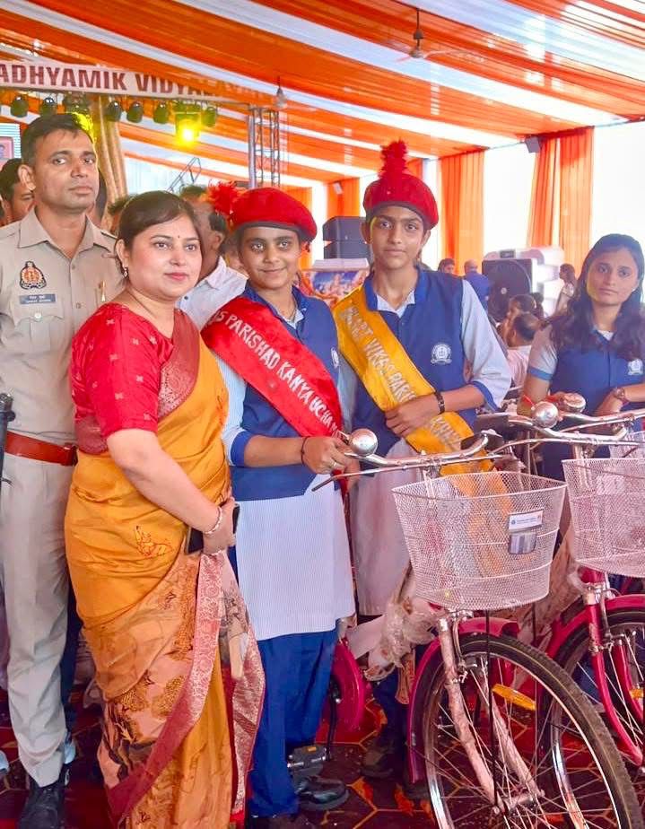 बुलंदशहर। आज खुर्जा में कालिंदी कुंज स्थित भारत विकास परिषद कन्या उच्च माध्यमिक विद्यालय में CSR फंड के माध्यम से अरेंज की गई साईकिलें छात्राओं को निःशुल्क वितरित की गई। प्रधानमंत्री और मुख्यमंत्री के “बेटी बचाओ-बेटी पढाओ” का सपना पूरा करने की दिशा में इस पहल से छात्राओं को निश्चित रूप से प्रोत्साहन मिलेगा और पढ़ाई के प्रति उनमें और अधिक रुचि जागृत होगी।