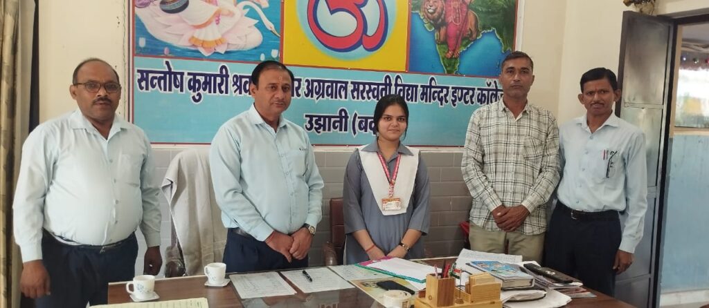 उझानी । नारी सशक्तीकरण की दिशा में उत्तर प्रदेश सरकार द्वारा संचालित एक महत्वाकांक्षी एवं बहुआयामी योजना मिशन शक्ति 2025 के कार्यक्रम के अंतर्गत विद्यालय संतोष कुमारी श्रवण अग्रवाल स०वि०सं०इ०का० उझानी में होनहार एवं मेधावी छात्रा नियति वाष्र्णेय, जो कि हाईस्कूल बोर्ड परीक्षा 2024 में जिले में प्रथम स्थान प्राप्त कर चुकी हैं, ने एक दिन के सांकेतिक प्रधानाचार्य के रुप में कार्य किया। इस प्रक्रिया के तहत नियति वाष्र्णेय ने सभी कक्षा-कक्षों एवं छात्र/छात्राओं की उपस्थिति का निरीक्षण किया, इस अवसर पर विकसित भारत-2047 कार्यक्रम का प्रदर्शन किया गया। इस कार्यक्रम के दौरान जिला-विद्यालय निरीक्षक श्री लाल सिंह यादव ने भी विद्यालय का निरीक्षण किया, तथा छात्रा के कार्य की सराहना की। इस कार्यक्रम के दौरान विद्यालय प्रबंधक श्री रतन कुमार जिंदल, प्रधानाचार्य श्री प्रमोद कुमार, छात्रा के माता, पिता, समस्त आचार्य एवं छात्र/छात्रायें उपस्थित रहें!