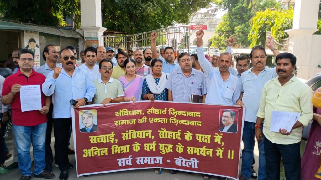 बरेली। मध्यप्रदेश के ग्वालियर में वरिष्ठ अधिवक्ता अनिल मिश्रा के संवैधानिक अभिव्यक्ति अधिकार एवं जीवन सुरक्षा की रक्षा की मांग को लेकर सर्व समाज बरेली के पदाधिकारियों ने महामहिम राष्ट्रपति को संबोधित ज्ञापन नगर मजिस्ट्रेट बरेली को सौंपा। ज्ञापन देने वालों में त्रिभुवन शर्मा, कौशल सारस्वत, गजेन्द्र पांडेय, राजेन्द्र घिल्डियाल सहित कई अधिवक्ता और सामाजिक कार्यकर्ता शामिल रहे। सर्व समाज के पदाधिकारियों ने कहा कि अधिवक्ता अनिल मिश्रा ने समाज और निधि से जुड़े मुद्दों पर तार्किक विचार रखे थे, जिन पर की गई आलोचना और मुकदमा उनकी अभिव्यक्ति की स्वतंत्रता (अनुच्छेद 19(1)(a)) पर सीधा आघात है। उन्होंने कहा कि किसी अधिवक्ता द्वारा सामाजिक या विधिक विषय पर मत रखना अपराध नहीं, बल्कि यह उसका संवैधानिक कर्तव्य है। ज्ञापन में मांग की गई कि अधिवक्ता अनिल मिश्रा के विरुद्ध किसी प्रकार की दमनात्मक या दुर्भावनापूर्ण कार्रवाई न की जाए, उनकी जीवन एवं व्यक्तिगत सुरक्षा सुनिश्चित की जाए और राज्य सरकार अधिवक्ताओं की अभिव्यक्ति की स्वतंत्रता का सम्मान बनाए रखे। सर्व समाज ने विश्वास जताया कि महामहिम राष्ट्रपति इस प्रकरण में संवेदनशीलता से संज्ञान लेकर संविधान की गरिमा एवं नागरिक स्वतंत्रता की रक्षा करेंगे। ज्ञापन देने बालों में प्रमोद उपाध्याय, श्रीधर शुक्ला, नीलमा पाठक , दीपक पाठक , कौशल सारावत, केशव शंखधार, धनंजय शर्मा , विशाल शर्मा , एम पी सिंह , महेश पाठक एडवोकेट, कार्तिक अग्रवाल, सौरभ अग्निहोत्री, प्रवेंद्र सिंह एडवोकेट , रमेश तिवारी, मदन शर्मा , दिव्य चतुर्वेदी, हरिओम गौतम आदि मौजूद रहे।