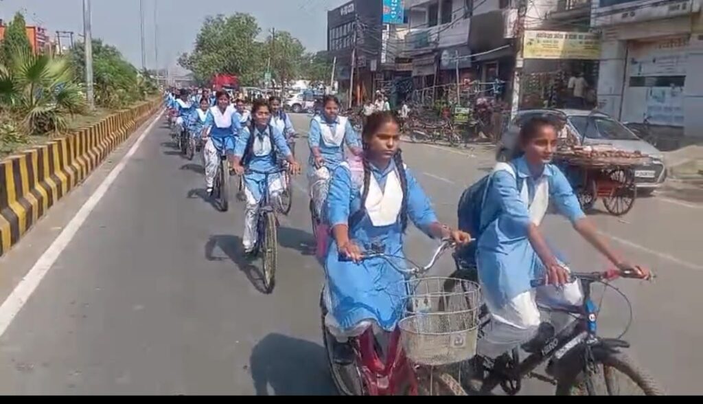 बरेली। मिशन शक्ति-5.0 अभियान के तहत सुदेश भूषण गर्ल्स इंटर कॉलेज की छात्राओं द्वारा जागरूकता साइकिल रैली निकाली गई। यह रैली करीब दो किलोमीटर तक निकाली गई, जिसमें छात्राओं ने महिला सुरक्षा, स्वावलंबन और सशक्तिकरण का संदेश दिया। कार्यक्रम की विशेष बात यह रही कि पुलिस अधीक्षक (एसपी) सोनाली मिश्रा स्वयं रैली में शामिल हुईं और छात्राओं का उत्साह बढ़ाया। उन्होंने छात्राओं को मिशन शक्ति अभियान की महत्ता बताते हुए कहा कि यह अभियान महिलाओं और बालिकाओं की सुरक्षा, सम्मान और आत्मनिर्भरता को बढ़ावा देने के लिए चलाया जा रहा है। रैली के दौरान छात्राओं ने नारे लगाकर समाज में जागरूकता फैलाने का संदेश दिया। विद्यालय परिवार ने भी इस पहल की सराहना की।