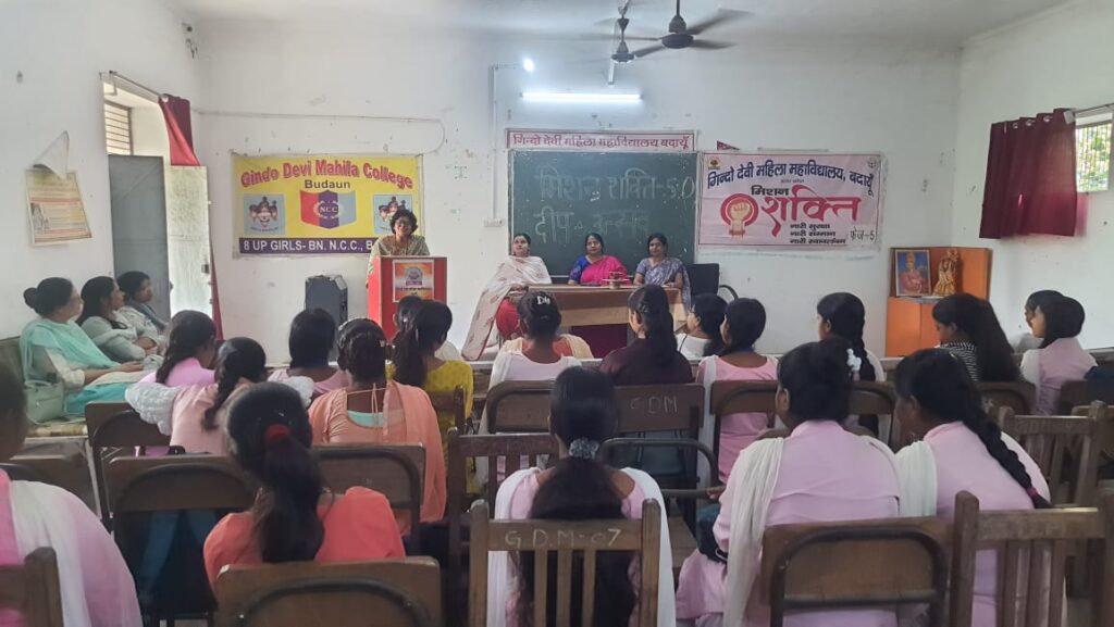 बदायूं। गिंदो देवी महिला महाविद्यालय में मिशन शक्ति 5.0 अभियान के अंतर्गत प्राचार्य डॉ सरला चक्रवर्ती के नेतृत्व एवं निर्देशन में एक कैरियर काउंसलिंग कार्यशाला का आयोजन किया गया। इस कार्यशाला का उद्देश्य छात्राओं को विभिन्न करियर विकल्पों एवं रोजगार के अवसरों के प्रति जागरूक करना था। कार्यक्रम का शुभारंभ ज्ञान की देवी मां शारदे के समक्ष पुष्प अर्पित करके किया गया। कार्यक्रम में कैरियर काउंसलिंग सेल की प्रभारी डॉ. इति अधिकारी ने छात्राओं को अपने रुचि एवं क्षमता के अनुसार उचित करियर चुनने के लिए प्रेरित किया। डॉ. अधिकारी ने कहा कि आज के युग में महिलाएँ हर क्षेत्र में अपनी पहचान बना रही हैं, अतः आत्मविश्वास, परिश्रम और सही दिशा में प्रयास सफलता की कुंजी हैं।