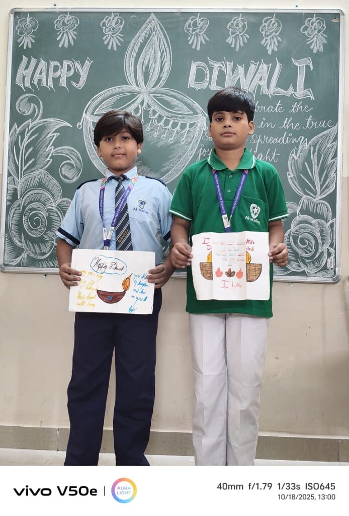 अल-हफीज एजुकेशनल एकेडमी में अंतर-श्रेणी दिवाली उत्सव प्रतियोगिता का आयोजन बड़े उत्साह और रचनात्मकता के साथ किया गया। विद्यार्थियों ने बढ़-चढ़कर भाग लिया और अपनी प्रतिभा का प्रदर्शन किया।