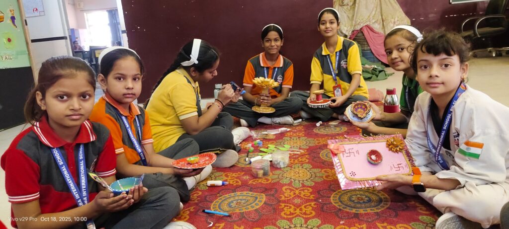 बाबा इन्टरनेशनल स्कूल में बच्चों ने सुन्दर दिये, कैंडल व पूजा की थाली सजाई