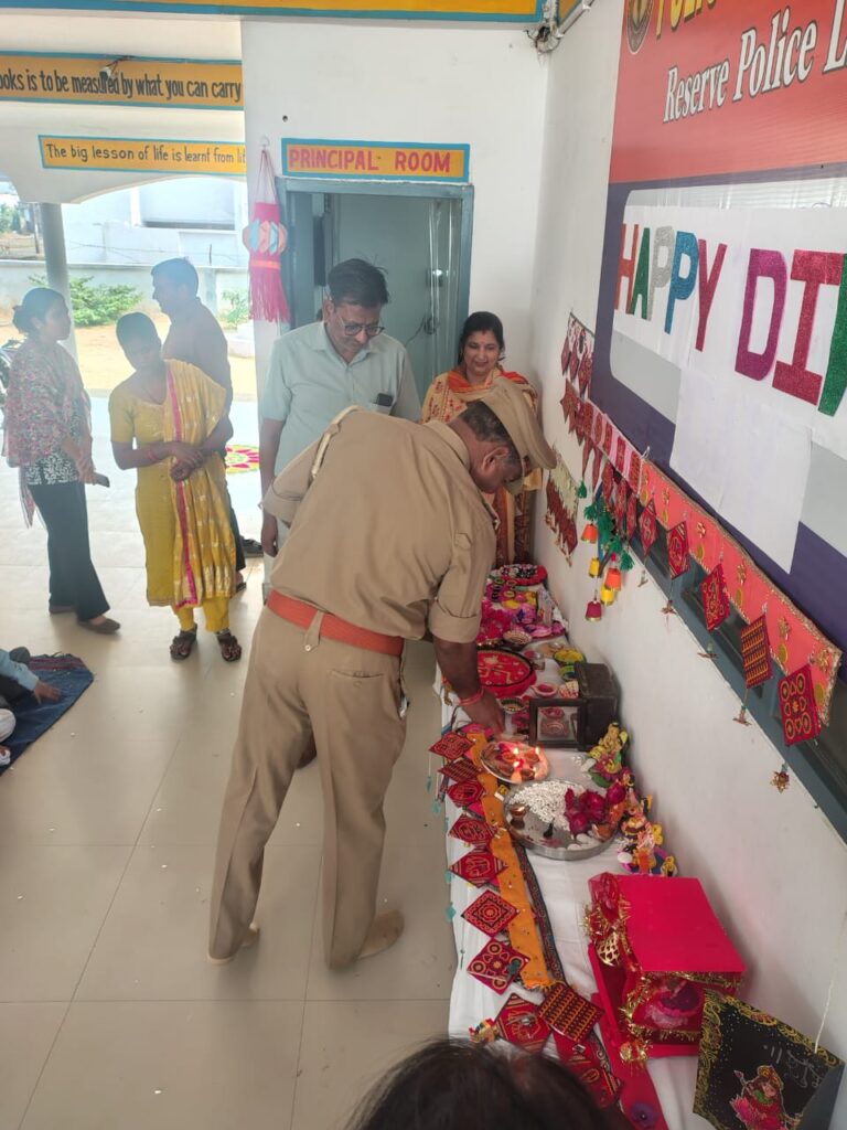 प्रतिसार निरीक्षक इन्द्रजीत सिंह जी प्रधानाचार्य शैलेन्द्र बत्तरा एवं समस्त स्टाफ द्वारा दीप प्रज्ज्वलित करके पूजन किया गया व मिष्ठान्न वितरण व सभी को दीपावली पर्व की शुभकामनाए दी गई ।