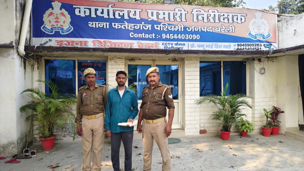 बरेली। वरिष्ठ पुलिस अधीक्षक बरेली के निर्देशन में अपराधियों के विरुद्ध चलाए जा रहे अभियान के तहत थाना फतेहगंज पश्चिमी पुलिस ने मुखबिर की सूचना पर रहपुरा अंडरपास से एक युवक को तमंचा व कारतूस के साथ गिरफ्तार किया। पुलिस के अनुसार पकड़े गए युवक की पहचान आरिफ पुत्र मेंहदी हसन, निवासी मोहल्ला अंसारी, कस्बा फतेहगंज पश्चिमी के रूप में हुई है। सूचना पर उप निरीक्षक प्रदीप कुमार, कांस्टेबल लेखपाल सागर व कांस्टेबल मनीष चौधरी रहपुरा अंडरपास पहुंचे। संदिग्ध अवस्था में मिले युवक की तलाशी लेने पर उसके कब्जे से 315 बोर का एक तमंचा और दो जिंदा कारतूस बरामद हुए। पुलिस ने आरोपी को मौके पर ही हिरासत में लेकर थाने पहुंचाया। उसके खिलाफ आर्म्स एक्ट में मुकदमा दर्ज कर अग्रिम कार्रवाई हेतु न्यायालय में पेश किया गया।