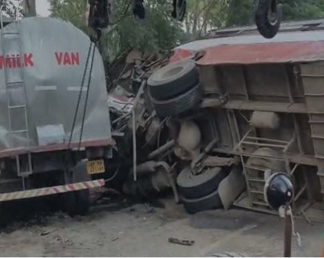 हाथरस। सासनी से अलीगढ़ की ओर जा रही एक रोडवेज बस की टैंकर से टक्कर हो गई, जिसमें एक मासूम बच्चे की मौत हो गई और 20 से अधिक यात्री घायल हो गए। यह हादसा आगरा-अलीगढ़ हाईवे पर समामई के निकट हुआ। टक्कर इतनी जोरदार थी कि बस के शीशे टूट गए, यात्रियों को शीशा तोड़कर बाहर निकाला गया। मौके पर अफरातफरी मच गई। घायल यात्रियों को तत्काल सामुदायिक स्वास्थ्य केंद्र सासनी ले जाया गया, जहां उपचार के दौरान एक बच्चे को मृत घोषित कर दिया गया। कई गंभीर रूप से घायलों को प्राथमिक उपचार के बाद जिला अस्पताल रेफर कर दिया गया। पुलिस ने बस और टैंकर को कब्जे में लेकर हादसे के कारणों की जांच शुरू कर दी है।