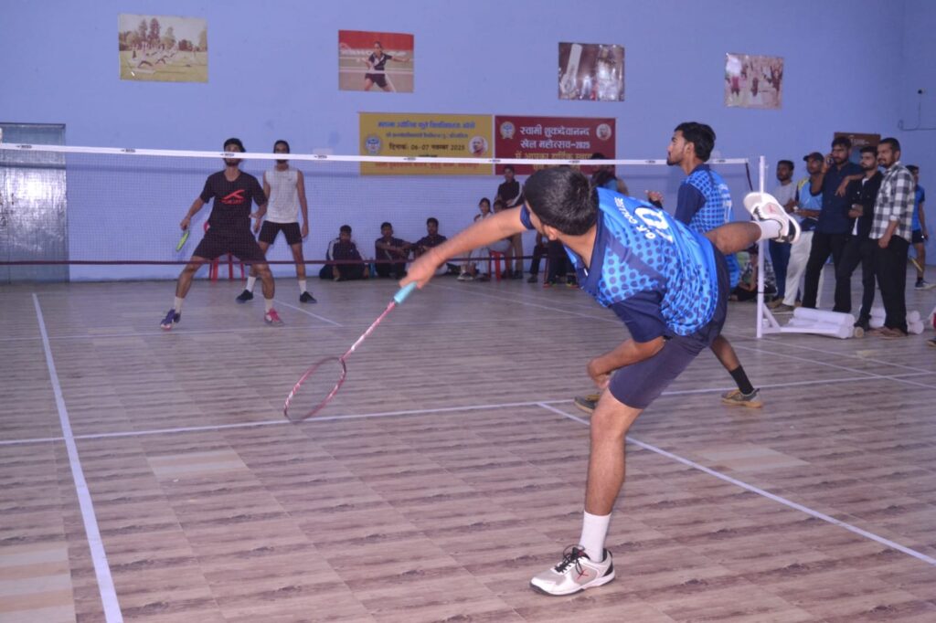 शाहजहांपुर। स्वामी शुकदेवानंद खेल महोत्सव के चौथे दिन एम जे पी रुहेलखंड विश्वविद्यालय के अंतरमहाविद्यालयी बैडमिंटन टूर्नामेंट (पुरूष वर्ग) का उद्घाटन एस एस कॉलेज के इनडोर स्टेडियम में हुआ। इस टूर्नामेंट में बरेली कॉलेज बरेली, राजकीय डिग्री कॉलेज बदायूं, उपाधि महाविद्यालय पीलीभीत, लक्ष्य कॉलेज बिजनौर, जी एफ कॉलेज शाहजहांपुर, एस एस कॉलेज, एस एस लॉ कॉलेज एवं विश्वविद्यालय कैम्पस की टीमों ने प्रतिभाग किया। टूर्नामेंट के दौरान बरेली कॉलेज ने उपाधि कॉलेज को, जीएफ कॉलेज ने राजकीय डिग्री कॉलेज बदायूं को तथा विश्वविद्यालय कैंपस ने एस एस लॉ कॉलेज को 2-0 से पराजित करते हुए सेमीफाइनल में जगह बनाई। पहला सेमीफाइनल जी एफ कॉलेज एवं एस एस कॉलेज के मध्य हुआ जिसमें एस एस कॉलेज विजयी रहा। दूसरा सेमीफाइनल विश्वविद्यालय कैंपस एवं बरेली कॉलेज के मध्य हुआ जिसमें बरेली कॉलेज विजयी रहा। खेलों के दौरान मुमुक्षु शिक्षा संकुल के मुख्य अधिष्ठाता स्वामी चिन्मयानंद सरस्वती ने खिलाड़ियों से परिचय प्राप्त किया एवं उनका उत्साहवर्धन किया। इस मौके पर एस एस कॉलेज के सचिव डॉ अवनीश मिश्र, प्राचार्य प्रो आर के आजाद, प्रो आदित्य कुमार सिंह, डॉ शालीन कुमार सिंह, डॉ रमेश चंद्रा, डॉ अंकित अवस्थी, डॉ शिशिर शुक्ला आदि उपस्थित रहे।