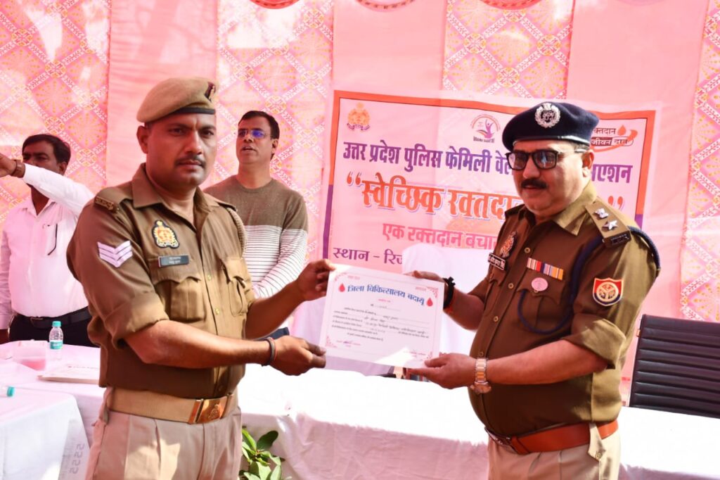 बदायूं। वामा सारथी पुलिस फ़ैमिली वेलफ़ेयर एसोसिएशन के तत्वाधान में रिजर्व पुलिस लाइन जनपद बदायूँ के परिसर में जिला चिकित्सालय बदायूँ के डॉ0 आयुष सिंह (मेडिकल ऑफिसर BCTV VAN), शिवम (फार्मासिस्ट ब्लड बैंक), मृत्युंजय चौधरी (लैब टैक्नीशियम ब्लड बैंक), कीर्ती शर्मा (काउन्सलर ब्लड बैंक), मनोज कुमार (पी०आर०ओ० ब्लड बैंक), आशा रानी (लैब टैक्नीशियन BCTV VAN) व उनकी टीम द्वारा स्वैच्छिक रक्तदान शिविर लगाया गया। इस शिविर का उद्देश्य जागरूकता फैलाते हुए अधिक से अधिक रक्तदाताओं का पंजीकरण कर और स्वैच्छिक रक्तदान को बढ़ावा देना होता है। इसका लक्ष्य जरूरतमंदों, जैसे गर्भवती माताओं, गंभीर रूप से बीमार व्यक्तियों, एच.आई.वी., हीमोफीलिया/थैलीसीमिया रोग से ग्रसित बच्चों को समय पर बिना किसी प्रतिस्थापन के रक्त या रक्त उत्पाद उपलब्ध कराना होता है।