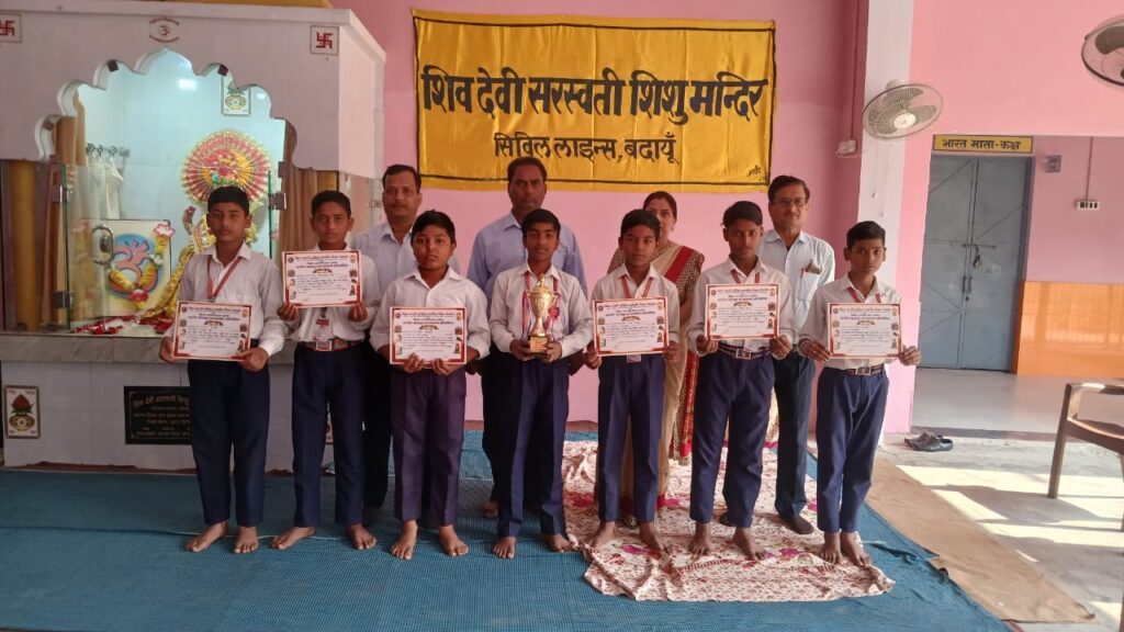 बदायूं। शिव देवी सरस्वती शिशु मन्दिर सिविल लाइन्स बदायूँ की कबड्डी की टीम ने शिशु शिक्षा समिति ब्रज प्रदेश द्वारा आयोजित सरस्वती शिशु मंदिर सिकंद्राराऊ (हाथरस) में संपन्न हुए 37वें प्रांतीय खेलकूद प्रतियोगिताओं में कबड्डी में प्रथम स्थान प्राप्त कर विद्यालय का नाम रोशन किया। वहीं अपने उत्कृष्ट प्रदर्शन के द्वारा टीम ने चैंपियनशिप भी अपने नाम कर ली। इस उपलब्धि से विद्यालय परिवार में खुशी की माहौल है। विद्या भारती शिशु शिक्षा समिति, ब्रज प्रदेश द्वारा प्रांत स्तरीय खेलकूद प्रतियोगिताएं सिकंदरा राव (हाथरस) में आयोजित की गई, जिसमें स्थानीय विद्यालय शिवदेवी सरस्वती शिशु मंदिर की दो टीम कबड्डी (भैया) एवं खो-खो (बहिनें) ने प्रतिभाग किया जिसमें कबड्डी की टीम ने अनेक टीमों को हराकर प्रांत में प्रथम स्थान प्राप्त कर गोल्ड मेडल जीता। उत्कृष्ट प्रदर्शन के लिए पूरी टीम को चैंपियनशिप प्रदान की गई। कबड्डी टीम के कप्तान भैया हर्षित ने चैंपियनशिप की ट्राफी अपने साथी खिलाड़ियों के साथ प्राप्त की। ट्रॉफी प्राप्त कर पूरी टीम खुशी से उछल पड़ी। वहीं बहिनों की खो-खो की टीम को सात्त्वना पुरस्कार से संतोष करना पड़ा। विद्यालय की कबड्डी टीम की इस उपलब्धि से विद्यालय परिवार में खुशी की लहर है। विद्यालय के व्यवस्थापक नवनीत प्रताप सिंह, अध्यक्ष अमृतपाल सिंह एवं कोषाध्यक्ष राजीव नारायण रायजादा सहित समस्त प्रबंध समिति ने खुशी जाहिर करते हुए टीम को शुभकामनाएं प्रदान कीं। विद्यालय के प्रधानाचार्य सुशील कुमार, उप प्रधानाचार्य लालाराम वर्मा सहित समस्त स्टाॅफ ने कबड्डी टीम की इस जीत का श्रेय भैया बहिनों की कड़ी मेहनत एवं शारीरिक प्रमुख आचार्य जयप्रकाश के कुशल मार्गदर्शन को बताया। आज संपूर्ण टीम का विद्यालय में सम्मान और स्वागत किया गया। चैंपियनशिप ट्रॉफी के साथ संपूर्ण स्टाफ ने फोटोग्राफी की। सम्पूर्ण टीम अब 9 से 11 नवंबर 2025 को सरस्वती विद्या मन्दिर सैयद नगली (हाथरस) में आयोजित होने वाली क्षेत्रीय प्रतियोगिताओं में मुकाबला करेगी, जिसकी जीत के लिए समस्त विद्यालय परिवार ने शुभकामनाएं प्रेषित कीं। इस अवसर पर विद्यालय के आचार्य कौशल किशोर, भोलेनाथ पाठक, रूपेंद्र सिंह, सुबोध मिश्रा, नरेशपाल सिंह, राकेश मिश्रा, निरंजन सिंह, अविलेश यादव, मुकेश तिवारी, राजकुमार गोला, देवेंद्र सक्सेना, राजीव कुमार, आयुषी, पुष्पा श्रीवास्तव, कंचन गुप्ता, सुमन शर्मा, ज्योत्सना सिंह, अंचल पाठक, प्रियंका सिंह आदि उपस्थित रहे।