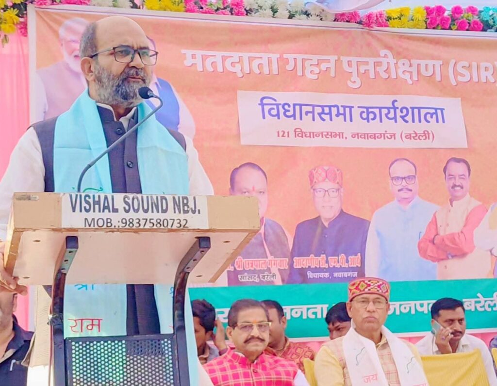 बरेली। भारतीय जनता पार्टी जिला बरेली की द्वारा मतदाता गहन पुनरीक्षण अभियान के तहत बहेड़ी विधानसभा के किंग्स रिसोर्ट में एवं नवाबगंज विधानसभा के आदर्श डिग्री कॉलेज में कार्यशाला हुई। कार्यशाला में मुख्य अतिथि के रूप में पूर्व प्रदेश उपाध्यक्ष व जिला प्रभारी चौधरी देवेंद्र सिंह रहे। कार्यशाला में सभी शक्ति केंद्र संयोजक, बूथ अध्य्क्ष, बीएलए, बूथ प्रवासी उपस्थित रहे। कार्यशाला की शुरुआत डॉ श्यामा प्रसाद मुखर्जी एवं पंडित दीनदयाल उपाध्याय जी के चित्र पर माल्यार्पण व द्वीप प्रज्वलित कर किया। जिला प्रभारी चौधरी सिंह ने कहा कि मतदाता सूची को सुदृढ़ बनाने के लिए भारत निर्वाचन आयोग द्वारा 4 नवंबर से एसआईआर की शुरूआत की गई है। जिसके लिए बीएलओ लगाए गए हैं जो घर-घर जाकर मतदाताओं को गणना प्रपत्र वितरित करेंगे।