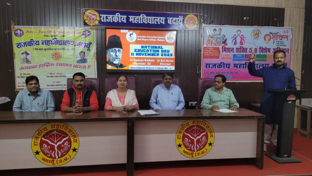 बदायूं, । राजकीय महाविद्यालय आवास विकास, बदायूं में मंगलवार को राष्ट्रीय शिक्षा दिवस समारोह आयोजित हुआ। यह दिवस स्वतंत्र भारत के पहले शिक्षा मंत्री मौलाना अबुल कलाम आजाद की जयंती के उपलक्ष्य में मनाया गया। महाविद्यालय में गठित इंस्टीट्यूशन इनोवेशन काउंसिल (आईईसी) के तत्वावधान में विचार गोष्ठी का आयोजन हुआ, जिसमें प्राचार्य प्रो. अनिल कुमार ने मौलाना आजाद के जीवन और शिक्षा के क्षेत्र में उनके योगदान को रेखांकित किया। उन्होंने कहा कि मौलाना आजाद ने शिक्षा को सामाजिक परिवर्तन का आधार मानते हुए समान अवसर और गुणवत्ता पर बल दिया। काउंसिल के अध्यक्ष डॉ. संजीव राठौर ने ‘शिक्षा का अधिकार’ और नवीन राष्ट्रीय शिक्षा नीति 2020 पर अपने विचार व्यक्त किए। उन्होंने कहा कि नई शिक्षा नीति में बहुविषयक, समावेशी और व्यावहारिक शिक्षा की ओर ध्यान केंद्रित किया गया है। इसका उद्देश्य विद्यार्थियों के सर्वांगीण विकास, रचनात्मकता, नवाचार और रोजगार-कौशल में वृद्धि करना है। नई नीति के तहत स्कूली शिक्षा से उच्च शिक्षा तक, व्यवहारिक ज्ञान, मूलभूत साक्षरता, भाषाई विविधता तथा तकनीकी समावेशन को बल दिया गया है। साथ ही, सभी स्तरों पर व्यावसायिक शिक्षा, बहु-विषयक पाठ्यक्रम और ऑनलाइन शिक्षा की नई संभावनाएँ खोली गई हैं।कार्यक्रम का संचालन करते हुए डॉ. राकेश कुमार जायसवाल ने कहा कि वर्तमान में शिक्षा के प्रत्येक स्तर पर गुणवत्तापूर्ण और व्यावहारिक ज्ञान की आवश्यकता है। डॉ हुकुम सिंह ने कहा कि बहुभाषी शिक्षा, स्थानीय भाषा या मातृभाषा को नई शिक्षा नीति में प्राथमिकता मिलने से ज्ञान ग्रहण करना सरल होता जारहा है। डॉ गौरव कुमार सिंह ने स्कूली शिक्षा से लेकर उच्च शिक्षा तक के सभी विषयों– विज्ञान, कला, मानविकी, भाषा, खेल आदि के समावेशन पर बल दिया। डॉ प्रेमचन्द चौधरी ने राष्ट्रीय शिक्षा दिवस पर मौलाना आजाद के योगदान और नई शिक्षा नीति के उद्देश्यों को विस्तार से रेखांकित किया। सभी वक्ता शिक्षकों और विद्यार्थियों ने शिक्षा क्षेत्र के नवनिर्माण और राष्ट्रीय एकता के विचारों को प्रमुखता से प्रस्तुत किया। इस अवसर पर डॉ. दिलीप कुमार वर्मा, डॉ संजय कुमार, डॉ. सरिता यादव, डॉ प्रियंका सिंह, डॉ जुनेद आलम सहित अन्य शिक्षकगण एवं छात्र-छात्राएं उपस्थित रहे।