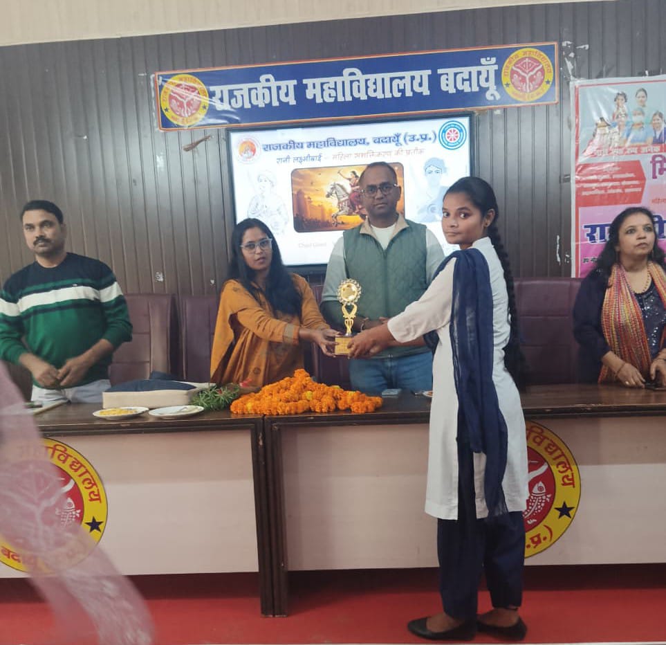 कार्यक्रम की अध्यक्षता प्राचार्य अनिल कुमार जी ने की एवं संचालन मिशन शक्ति कार्यक्रम अधिकारी डॉक्टर शशी प्रभा ने किया । कार्यक्रम में मुख्य अतिथि एवं वक्ता डॉ सर्वेश कुमारी,राजकीय पुरुष चिकित्सालय, बदायूं ने बालक – बालिकाओं को रानी लक्ष्मीबाई जयंती की शुभकामना देते हुए कहा कि हमारी भारतीय संस्कृति में रानी लक्ष्मीबाई का महत्वपूर्ण स्थान है एवं उनके जीवन गाथा, व कहानियां हमें साहस ,संघर्ष, व वीरता के लिए प्रेरित करती हैं। अपने वक्तव्य में उन्होंने कहा कि शारीरिक स्वास्थ्य के साथ-साथ मानसिक स्वास्थ्य का भी हमें विशेष ध्यान रखने की आवश्यकता है क्योंकि आजकल बालक बालिकाओं में कुंठा, चिंता,तनाव आदि काफी देखा जाता है, और आवश्यकता इस बात की है कि छात्र- छात्राएं कैसे उसे तनाव और कुंठा से बाहर आए। अपने वक्तव्य में उन्होंने छात्र-छात्राओं को तनाव मुक्त रहने के लिए टिप्स दिए एवं योग एवं अन्य व्यायाम करने के लिए प्रेरित किया। प्राचार्य डॉ अनिल कुमार जी ने कहा कि रानी लक्ष्मीबाई नारी सशक्तिकरण की एक प्रेरणादायक उद्धरण है। उन्होंने महिला नेतृत्व की क्षमता को दिखाया और उन्होंने महिलाओं को शिक्षा और प्रशिक्षण देने की आवश्यकता पर बल दिया ताकि वे आत्मनिर्भर बन सके। इतिहास विभागाध्यक्ष डॉ अनिल कुमार जी ने कहा कि रानी लक्ष्मीबाई ने सामाजिक परिवर्तन के लिए काम किया एवं महिलाओं के अधिकारों की लड़ाई लड़ी और समाज में उनकी स्थिति को मजबूत किया। डॉ शशि प्रभा ने कहा कि रानी लक्ष्मीबाई की कहानी महिलाओं को स्वतंत्र और आत्मनिर्भर बनने के लिए प्रेरित करती हैं। डॉ प्रेमचंद जी ने कहा कि रानी लक्ष्मीबाई की कहानी नारी शक्ति का प्रतीक है जो महिलाओं को अपने लक्ष्य को प्राप्त करने के लिए प्रेरित करती है। डॉ हुकुम सिंह ने कहा कि रानी लक्ष्मी बाई की कहानी हमें यह प्रेरणा देती हैं कि अगर हम अपने देश और समाज के लिए लड़ते हैं तो हम कुछ भी कर सकते हैं वह एक वीरांगना थी जिन्होंने अपने साहस और वीरता से इतिहास में अपना नाम अमर कर दिया। डॉ ज्योति विश्नोई ने कहा कि रानी लक्ष्मीबाई ने अपने साहस और वीरता से अंग्रेजों के छक्के छुड़ा दिए थे और उन्होंने झांसी की रक्षा के लिए अविस्मरणीय संघर्ष किया । डॉ संजय कुमार ने कहा कि महिला सशक्तिकरण में रानी लक्ष्मीबाई का विशेष योगदान है। कार्यक्रम में डॉक्टर ,गौरव कुमार सिंह, डॉ सतीश सिंह यादव, डॉक्टर जुनेद आलम, डॉ पीके शर्मा ने सहयोग प्रदान किया। एवं महिलाओं को अपने अधिकारों के लिए आवाज उठानी चाहिए। बीए तृतीय की छात्र मुस्कान बी द्वारा रानी लक्ष्मीबाई की वेशभूषा में नाटक प्रस्तुत किया गया।महिमा, मुस्कान आदि ने अपने विचार प्रस्तुत किया। मिशन शक्ति अभियान के तहत पूर्व