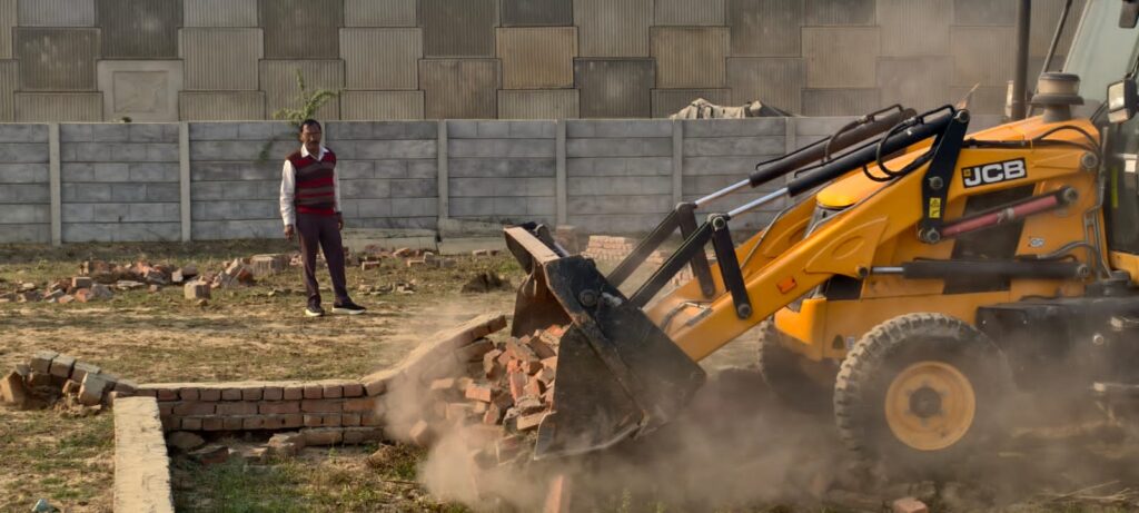 बरेली। बरेली विकास प्राधिकरण की प्रवर्तन टीम ने शनिवार को थाना हाफिजगंज क्षेत्र में अवैध रूप से विकसित की जा रही एक कॉलोनी पर ध्वस्तीकरण की कार्रवाई की। ग्राम रिठौरा में पप्पू कश्यप द्वारा लगभग 4000 वर्गमीटर भूमि पर बिना प्राधिकरण की मंजूरी के प्लॉटिंग, सड़क निर्माण और बाउंड्रीवाल खड़ी की जा रही थी। प्राधिकरण ने इसे उ.प्र. नगर योजना एवं विकास अधिनियम 1973 का उल्लंघन मानते हुए कार्रवाई की। ध्वस्तीकरण कार्य सहायक अभियंता धर्मवीर सिंह, अवर अभियंता अजीत कुमार तथा प्रवर्तन टीम की उपस्थिति में पूर्ण किया गया।