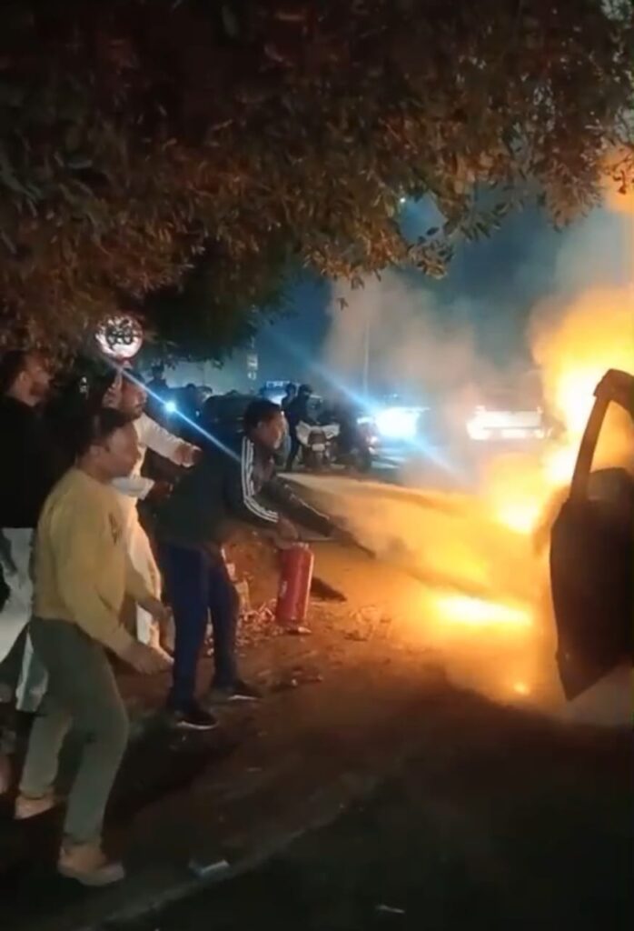 इज़्ज़तनगर यांत्रिक कारखाना गेट पर कार में लगी भीषण आग , मंडल मंत्री रजनीश तिवारी ने सभी सवारियों को सुरक्षित निकाला, बड़ा हादसा टला