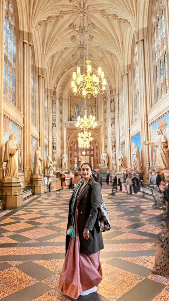 लंदन की संसद में शिप्रा पाठक ने कहा—“आपने हमारी संस्था ‘पंचतत्व’ के कार्यों को देखकर मुझे यहाँ बुलाया, यह मेरे लिए नहीं, बल्कि भारत की पर्यावरण संस्कृति के लिए सम्मान है।”